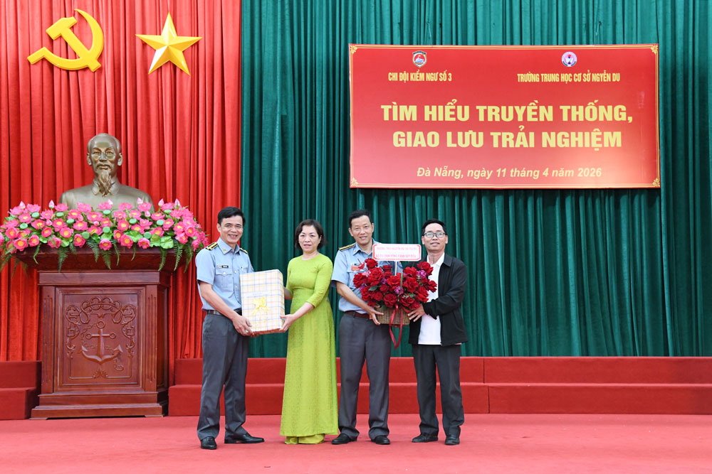 Sáng 11/4, tại xã Núi Thành (TP. Đà Nẵng), Chi đội Kiểm ngư số 3 tổ chức đón tiếp gần 300 giáo viên, học sinh Trường THCS Nguyễn Du trên địa bàn đến tham quan, tìm hiểu truyền thống và giao lưu trải nghiệm tại Chi đội. Đồng chí Đỗ Đức Liêm - Phó Chi đội trưởng Chi đội Kiểm ngư số 3 chủ trì đón tiếp Đoàn.