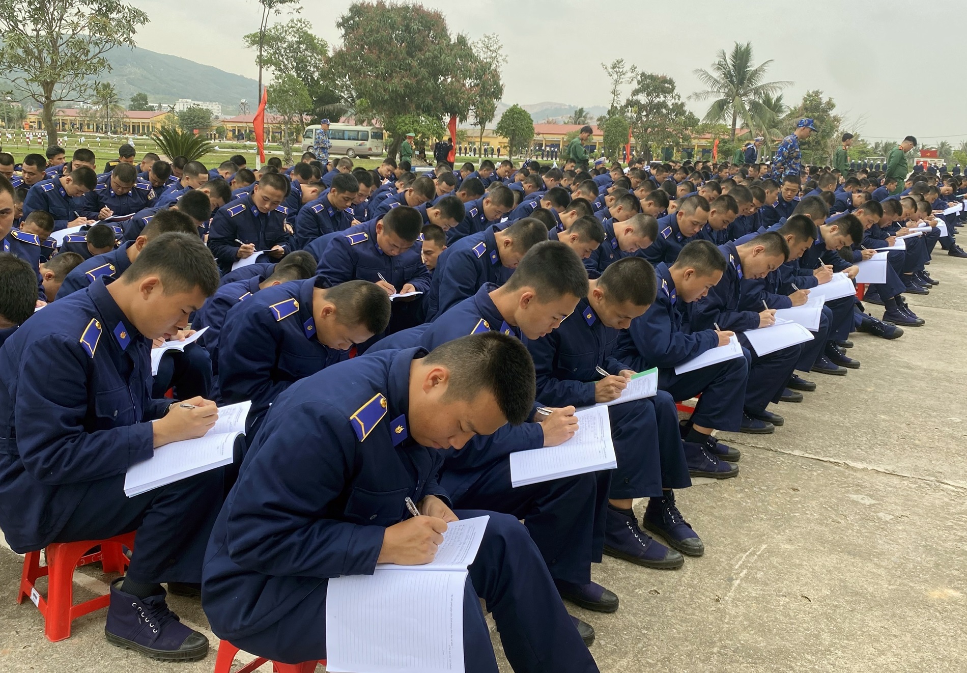 Chiến sĩ mới dự buổi tuyên truyền, quán triệt nhiệm vụ tại Tiểu đoàn 471, Lữ đoàn 147 Hải quân.