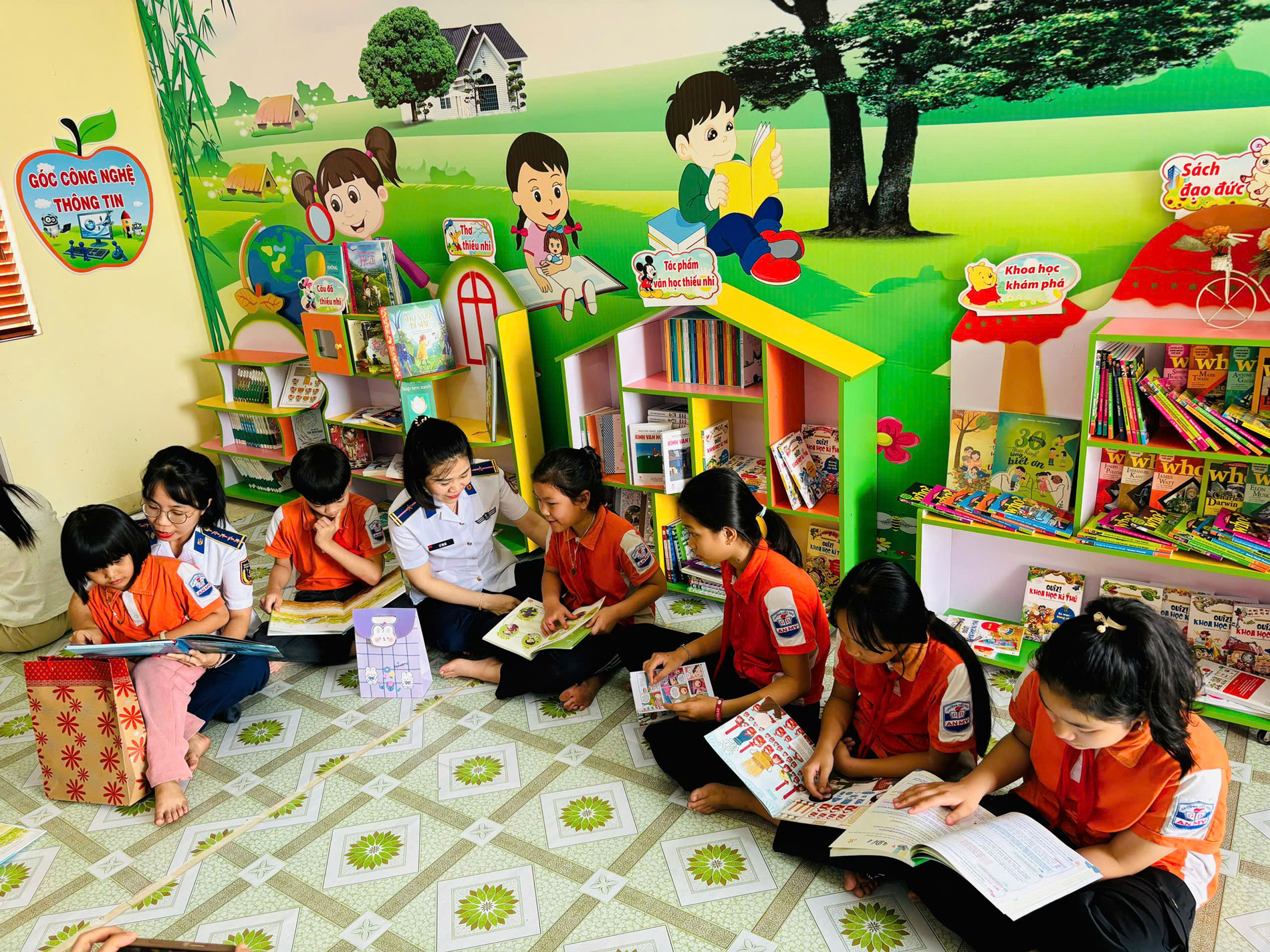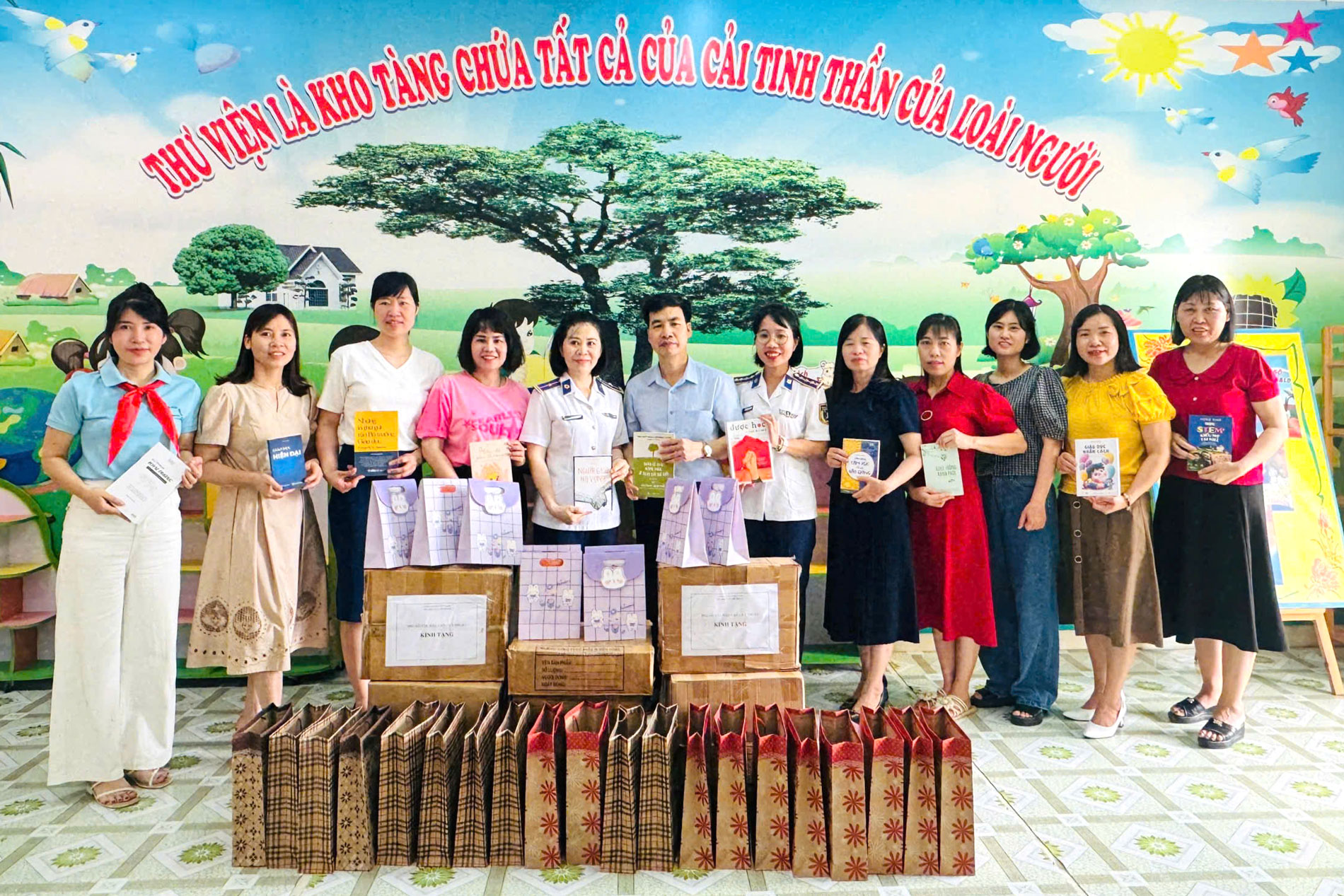 Hội Phụ nữ Cục Hậu cần - Kỹ thuật Cảnh sát biển và Nhóm thiện nguyện Mỹ Đức trao tặng 300 đầu sách cho thư viện Trường Tiểu học An Mỹ.