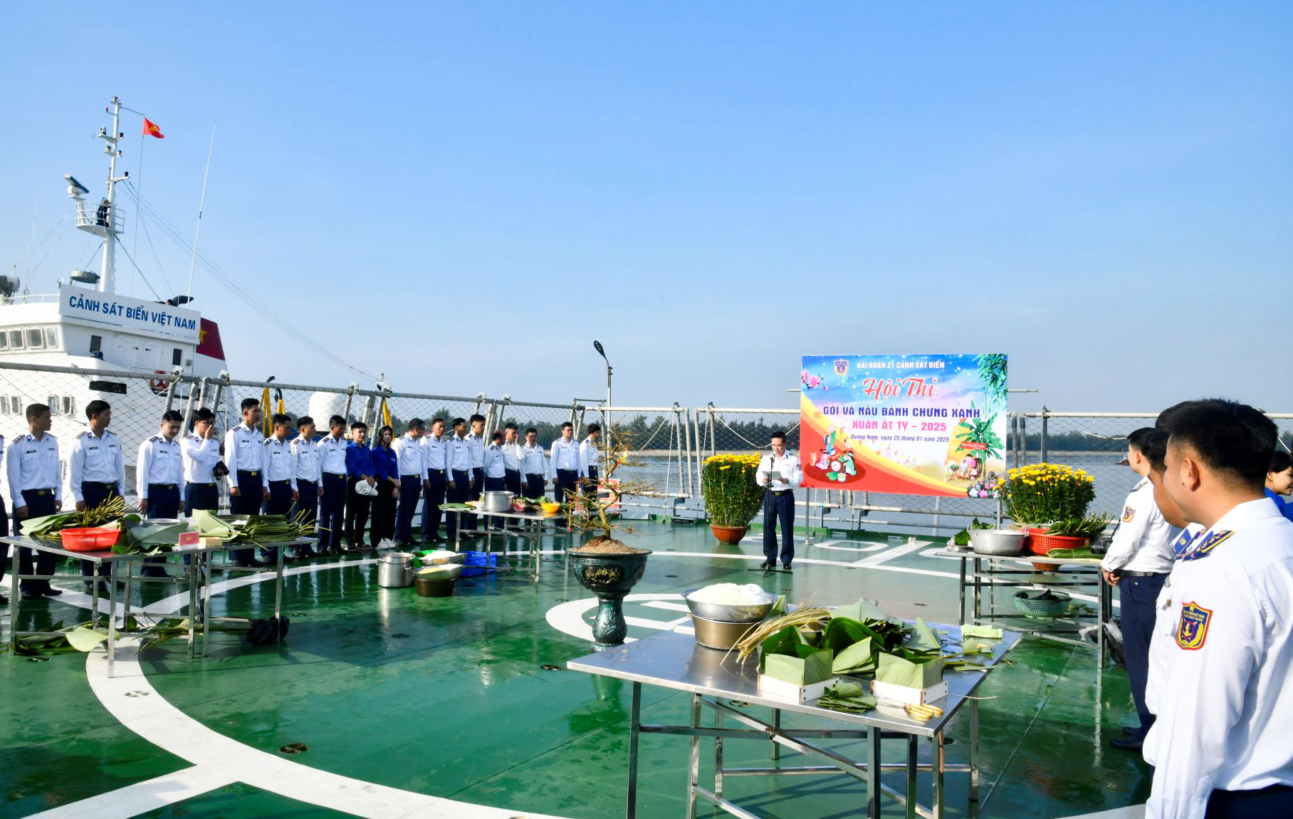 Sáng 25/01 (26/12 âm lịch), Hải đoàn 21/Bộ Tư lệnh Vùng Cảnh sát biển 2 phối hợp với đoàn xã Tam Quang, huyện Núi Thành tổ chức Hội thi “Gói và nấu bánh chưng xanh” xuân Ất Tỵ năm 2025. Đại tá Triệu Quang Quy - Bí thư Đảng ủy – Chính ủy Hải đoàn 21 dự và chỉ đạo hội thi.