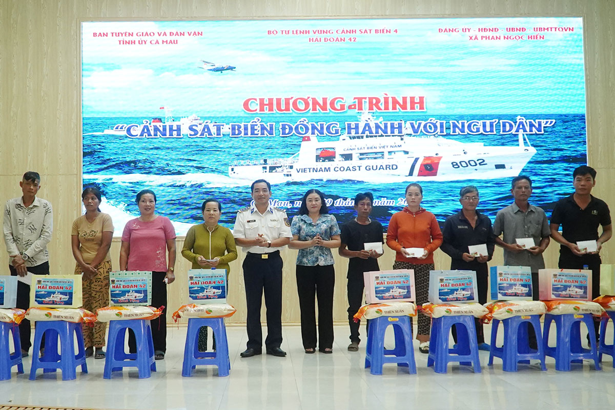 Trước đó, ngày 17/8, Hải đoàn 42 cũng đã phối hợp với cấp ủy, chính quyền xã Gành Hào tổ chức chương trình “Cảnh sát biển đồng hành với ngư dân”. Các hoạt động nối tiếp tại xã Gành Hào và xã Phan Ngọc Hiển không chỉ góp phần giúp ngư dân nâng cao kiến thức pháp luật, ý thức bảo vệ môi trường, nguồn lợi thủy sản và chủ quyền biển, đảo, mà còn khẳng định sự đồng hành, gắn bó máu thịt giữa Cảnh sát biển Việt Nam với nhân dân. Đây là nền tảng quan trọng để ngư dân an tâm vươn khơi, bám biển, phát triển kinh tế và cùng lực lượng chức năng bảo vệ vững chắc chủ quyền biển, đảo thiêng liêng của Tổ quốc.