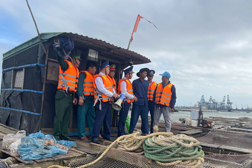 Đối với các tàu, thuyền đang hoạt động khai thác đánh bắt thủy, hải sản trên biển, các lực lượng Cảnh sát biển, Công an, Biên phòng phối hợp tăng cường tuyên truyền, hướng dẫn bà con ngư dân chủ động đưa phương tiện vào nơi tránh trú bão, neo đậu an toàn theo thông báo của các cơ quan chức năng; tuyệt đối không cho người ở lại trên tàu, chòi canh, lồng bè nuôi trồng thủy sản; đồng thời yêu cầu ngư dân chấp hành nghiêm lệnh cấm biển của UBND tỉnh Quảng Ngãi để bảo đảm an toàn tính mạng, tài sản, hạn chế thiệt hại khi bão đổ bộ.
