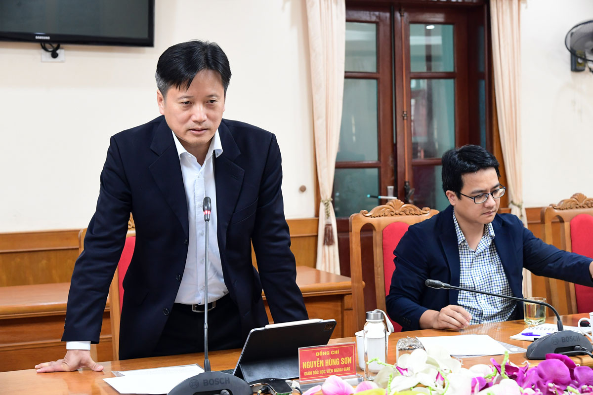 Đồng chí Giám đốc Học viện Ngoại giao nhấn mạnh, mục đích của chuyến khảo sát nhằm tìm hiểu, trao đổi và lấy ý kiến của các cơ quan quản lý Nhà nước, chuyên gia về các nội dung phát triển bền vững kinh tế biển. Kết quả thu được trong chuyến khảo sát thực tế tại đơn vị, các thành viên đoàn công tác sẽ sàng lọc, bổ sung, cập nhật những vấn đề mới, thực tiễn đang đặt ra nhằm vận dụng có hiệu quả vào quá trình xây dựng Chương trình khoa học và công nghệ cấp quốc gia giai đoạn đến năm 2030 thông qua Đề tài cấp nhà nước “Nghiên cứu khoa học và công nghệ phục vụ phát triển bề vững kinh tế biển”.