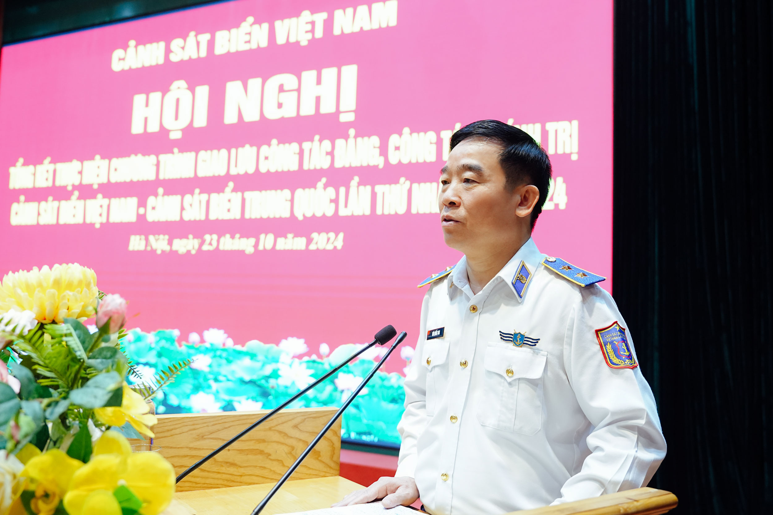 Báo cáo tại hội nghị cho biết, Chương trình giao lưu công tác đảng, công tác chính trị (CTĐ,CTCT) Cảnh sát biển Việt Nam - Cảnh sát biển Trung Quốc lần thứ nhất, năm 2024 được Bộ Quốc phòng nước Cộng hòa xã hội Chủ nghĩa Việt Nam chỉ đạo Cảnh sát biển Việt Nam chủ trì, phối hợp Trung tâm Phát thanh - Truyền hình Quân đội và các đơn vị liên quan tổ chức. Quá trình xây dựng và thực hiện Chương trình, Cảnh sát biển Việt Nam đã nhận được sự lãnh đạo, chỉ đạo thường xuyên, chặt chẽ của trên; sự phối hợp, hỗ trợ, hướng dẫn của các cơ quan, đơn vị có liên quan của Bộ Quốc phòng, sự nhiệt tình, có trách nhiệm của các cơ quan, đơn vị phối hợp và các cộng tác viên. Các hoạt động trong Chương trình giao lưu đảm bảo an ninh, an toàn tuyệt đối; trọng thị, chu đáo; đúng mục đích, yêu cầu, nội dung kế hoạch đã xác định; đúng nguyên tắc đối ngoại. Chương trình đã nhận được sự quan tâm, đánh giá cao của lãnh đạo Đảng, Nhà nước, các Ban, Bộ, Ngành Trung ương, Thủ trưởng Bộ Quốc phòng, Thủ trưởng Bộ Tổng Tham mưu, Thủ trưởng Tổng Cục Chính trị, các cơ quan, đơn vị trong và ngoài Quân đội; được bạn bè quốc tế khen ngợi về ý nghĩa, thông điệp, sáng kiến tổ chức Chương trình.