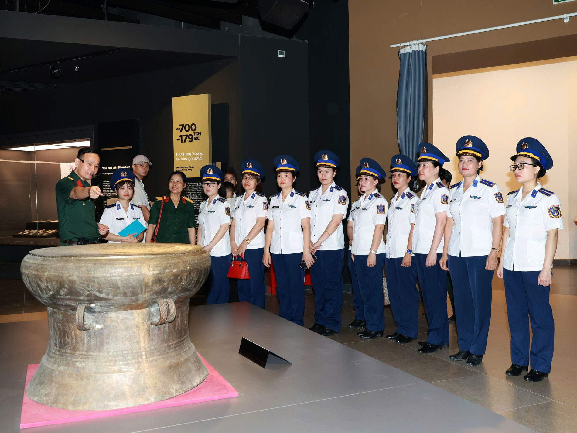 Đoàn phụ nữ điển hình tiên tiến Cảnh sát biển tại Bảo tàng Lịch sử Quân sự Việt Nam.