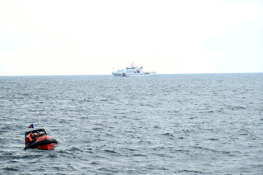 Lực lượng Cảnh sát biển Trung Quốc tiếp cận tàu Cảnh sát biển Việt Nam để tham gia hội đàm.