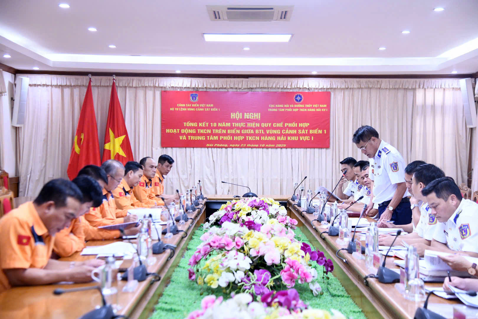 Chiều 23/10, tại Hải Phòng, Bộ Tư lệnh Vùng Cảnh sát biển 1 và Trung tâm Phối hợp tìm kiếm, cứu nạn (TKCN) hàng hải khu vực I phối hợp tổ chức Hội nghị tổng kết thực hiện Quy chế phối hợp hoạt động TKCN trên biển. Đại tá Lương Cao Khải - Phó Tư lệnh, Tham mưu trưởng Vùng Cảnh sát biển 1 và ông Bùi Hoàng Tiệp, Giám đốc Trung tâm Phối hợp TKCN hàng hải khu vực I đồng chủ trì hội nghị.