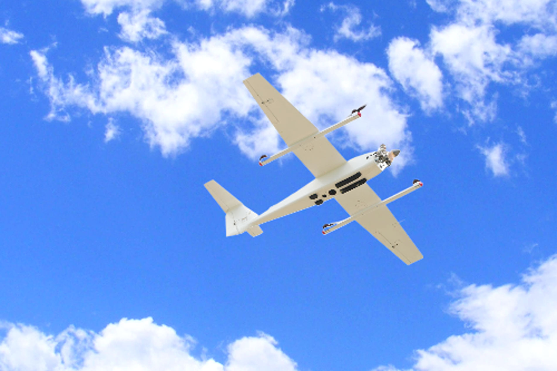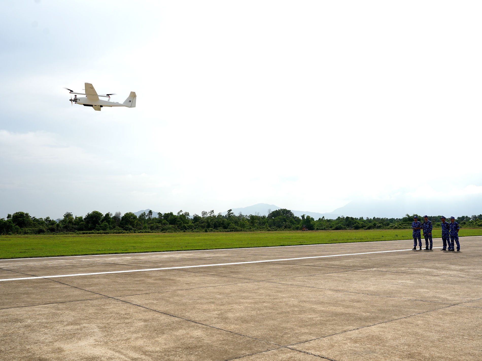 Máy bay UAV LV-31 sau khi cất cánh và bắt đầu trinh sát mục tiêu giả định.