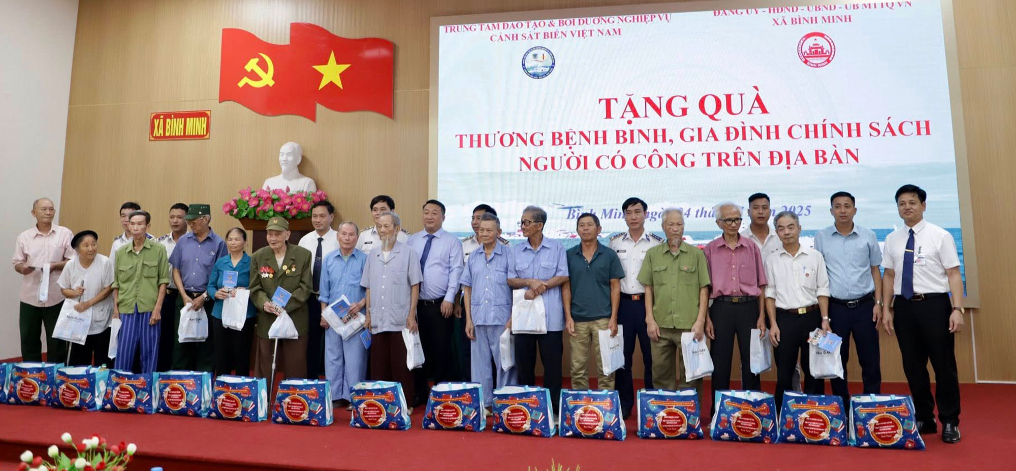 Trung tâm Đào tạo và Bồi dưỡng nghiệp vụ Cảnh sát biển trao quà cho các gia đình chính sách, người có công, hộ nghèo và học sinh vượt khó học giỏi trên địa bàn xã Bình Minh.