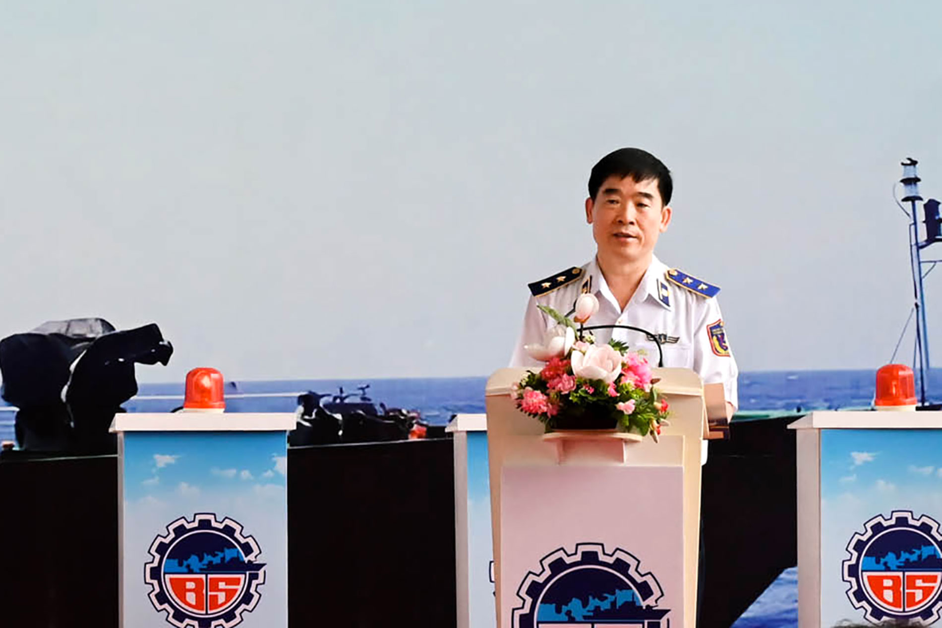 Trung tướng Bùi Quốc Oai - Chính ủy Cảnh sát biển Việt Nam phát biểu tại Lễ đặt ky đóng mới tàu tuần tra cao tốc TT-400 chiếc số 13.