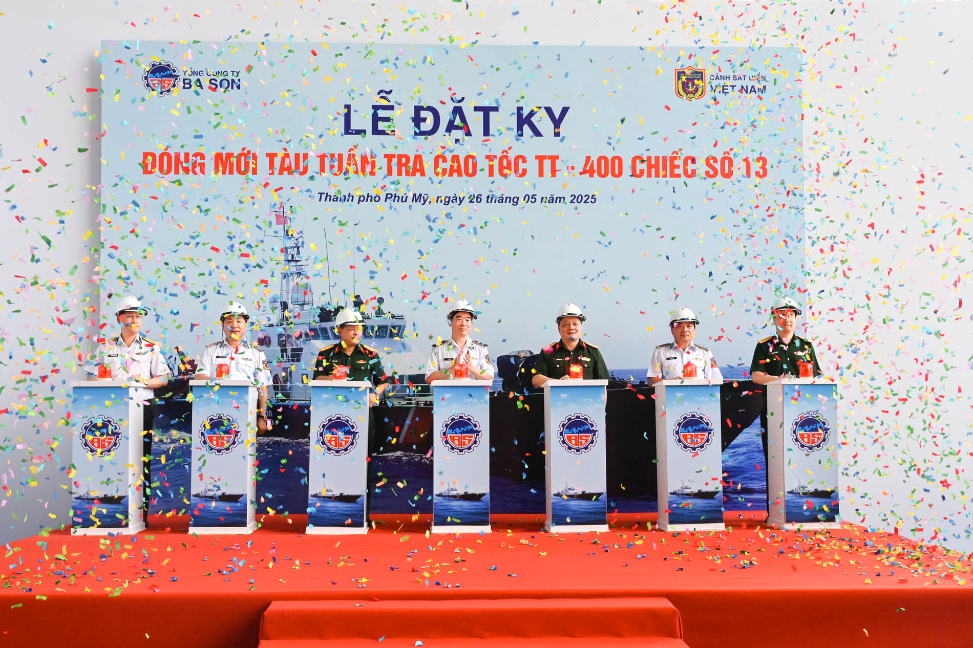 Ngày 26/5, tại thành phố Phú Mỹ, tỉnh Bà Rịa - Vũng Tàu, Cảnh sát biển Việt Nam và Tổng công ty Ba Son/Tổng cục Công nghiệp Quốc phòng tổ chức Lễ đặt ky đóng mới tàu tuần tra cao tốc TT-400 chiếc số 13. Đến dự có Trung tướng Bùi Quốc Oai - Chính ủy Cảnh sát biển Việt Nam; Đại tá Nguyễn Đức Tăng - Phó Chính ủy Tổng cục Công nghiệp Quốc phòng; đại biểu Trung tâm Đăng kiểm tàu quân sự, Viện Thiết kế tàu quân sự, Viện Kỹ thuật Hải quân và lãnh đạo Tổng công ty Ba Son.