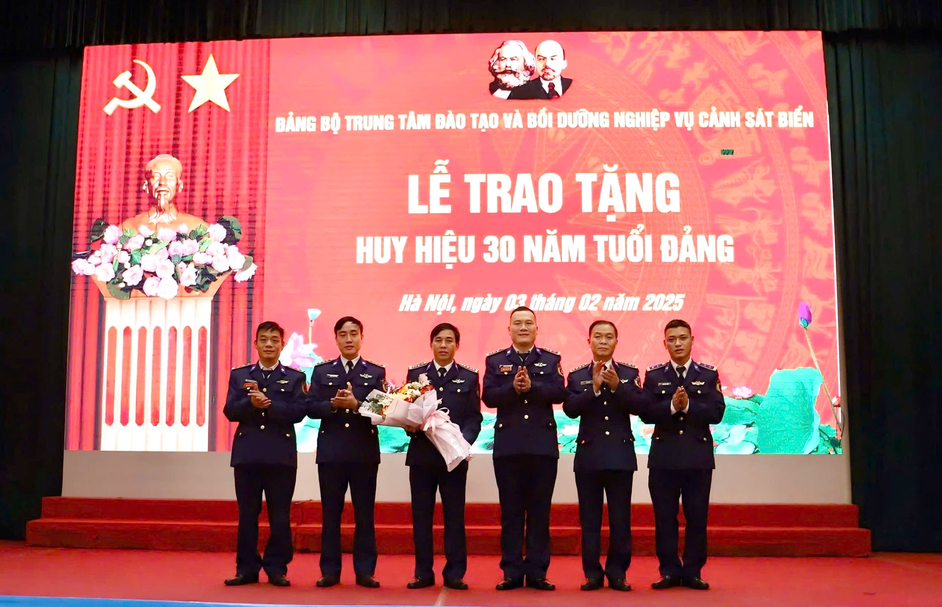 Nhân kỷ niệm 95 năm Ngày thành lập Đảng Cộng sản Việt Nam (03/02/1930 - 03/02/2025), sáng 03/02, Đảng bộ Trung tâm Đào tạo và Bồi dưỡng nghiệp vụ Cảnh sát biển (Trung tâm) tổ chức Lễ trao tặng Huy hiệu 30 năm tuổi Đảng cho Đại tá Đoàn Văn Hiểu - Phó Bí thư Đảng ủy, Giám đốc Trung tâm.