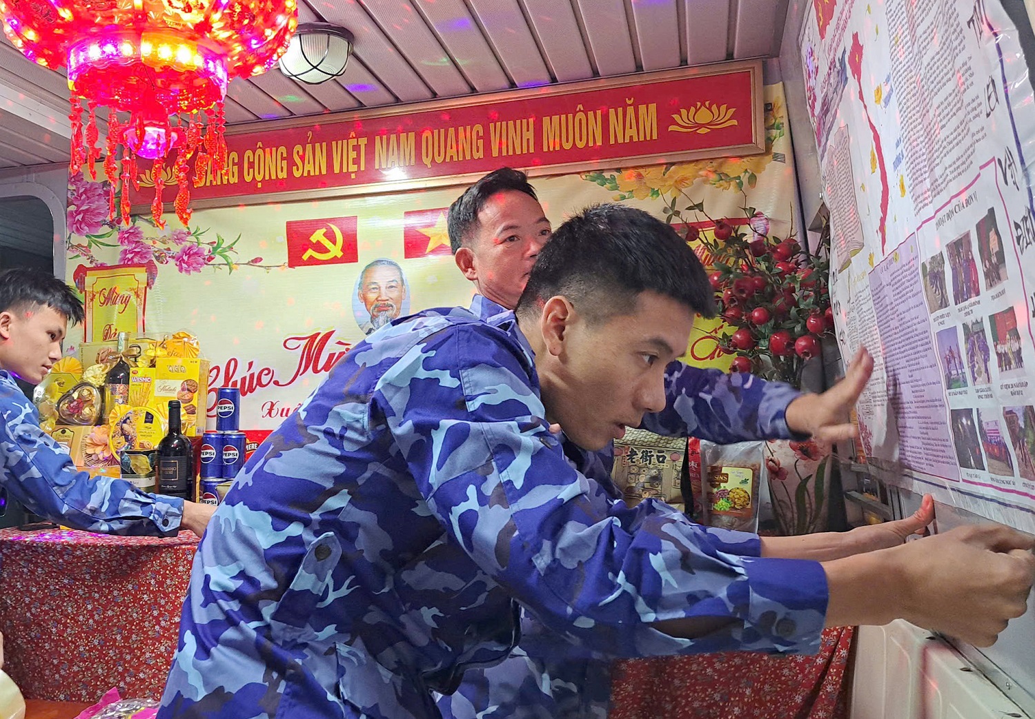 Trang trí phòng đón xuân trên tàu.