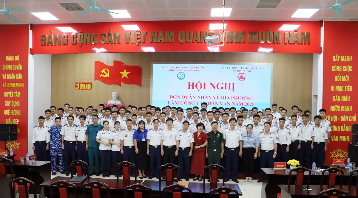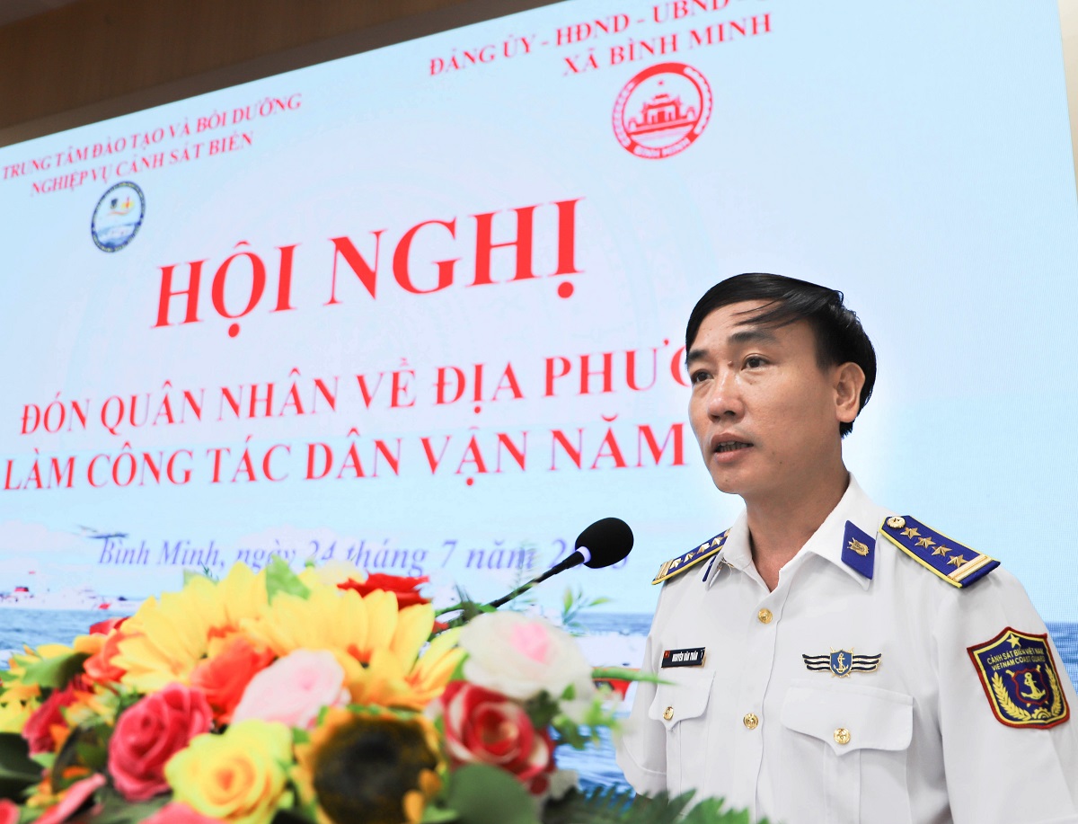 Sáng 24/7, Trung tâm Đào tạo và Bồi dưỡng nghiệp vụ Cảnh sát biển (Trung tâm) phối hợp với Đảng ủy, UBND, Ủy ban Mặt trận Tổ quốc Việt Nam xã Bình Minh (thành phố Hà Nội) tổ chức Hội nghị đón quân nhân về địa phương làm công tác dân vận năm 2025. Đại tá Nguyễn Văn Tuân - Bí thư Đảng ủy, Chính ủy Trung tâm và đồng chí Nguyễn Khánh Bình - Bí thư Đảng ủy, Chủ tịch Hội đồng nhân dân xã chủ trì Hội nghị.