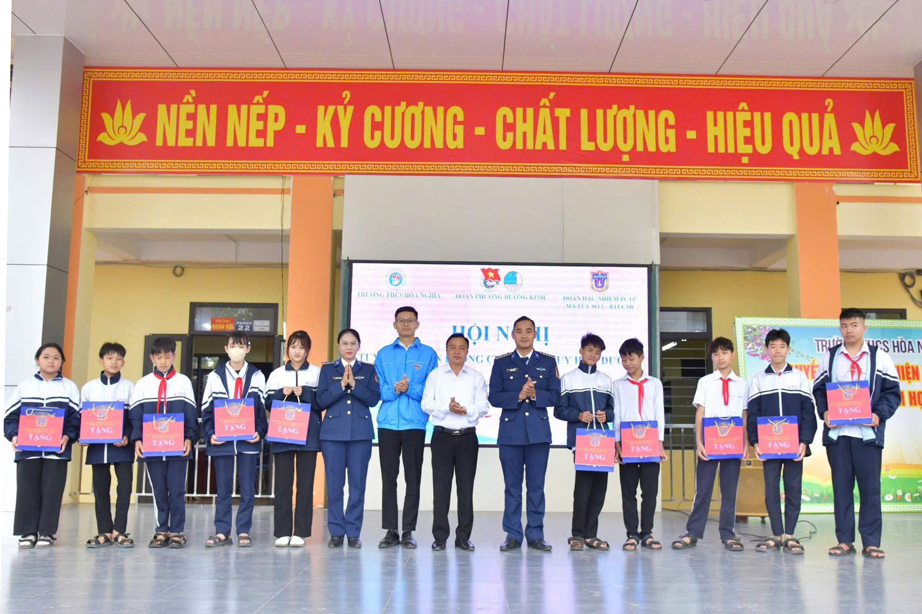 Tặng quà cho học sinh có hoàn cảnh khó khăn vươn lên học giỏi tại trường THCS Hòa Nghĩa, phường Dương Kinh, thành phố Hải Phòng.