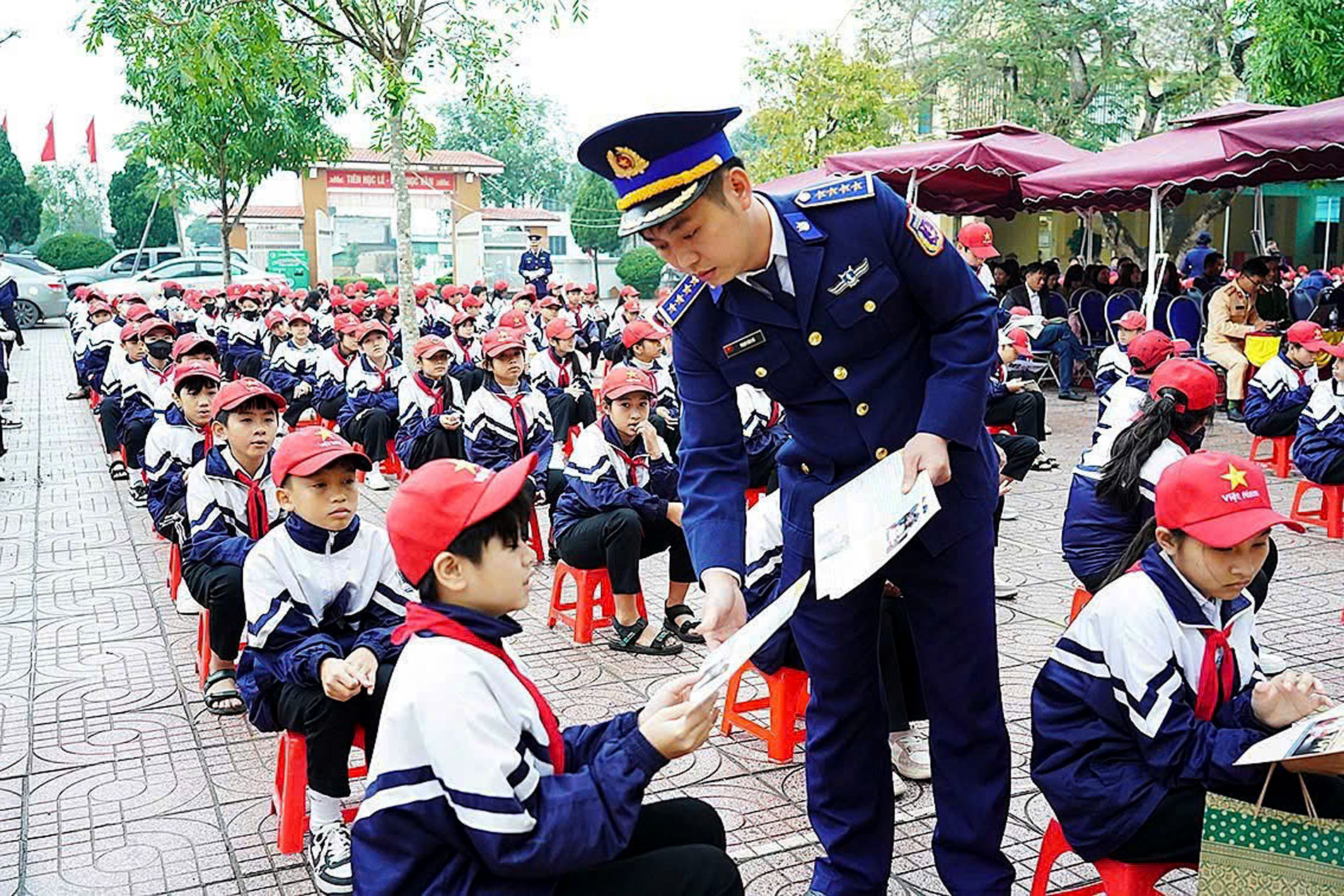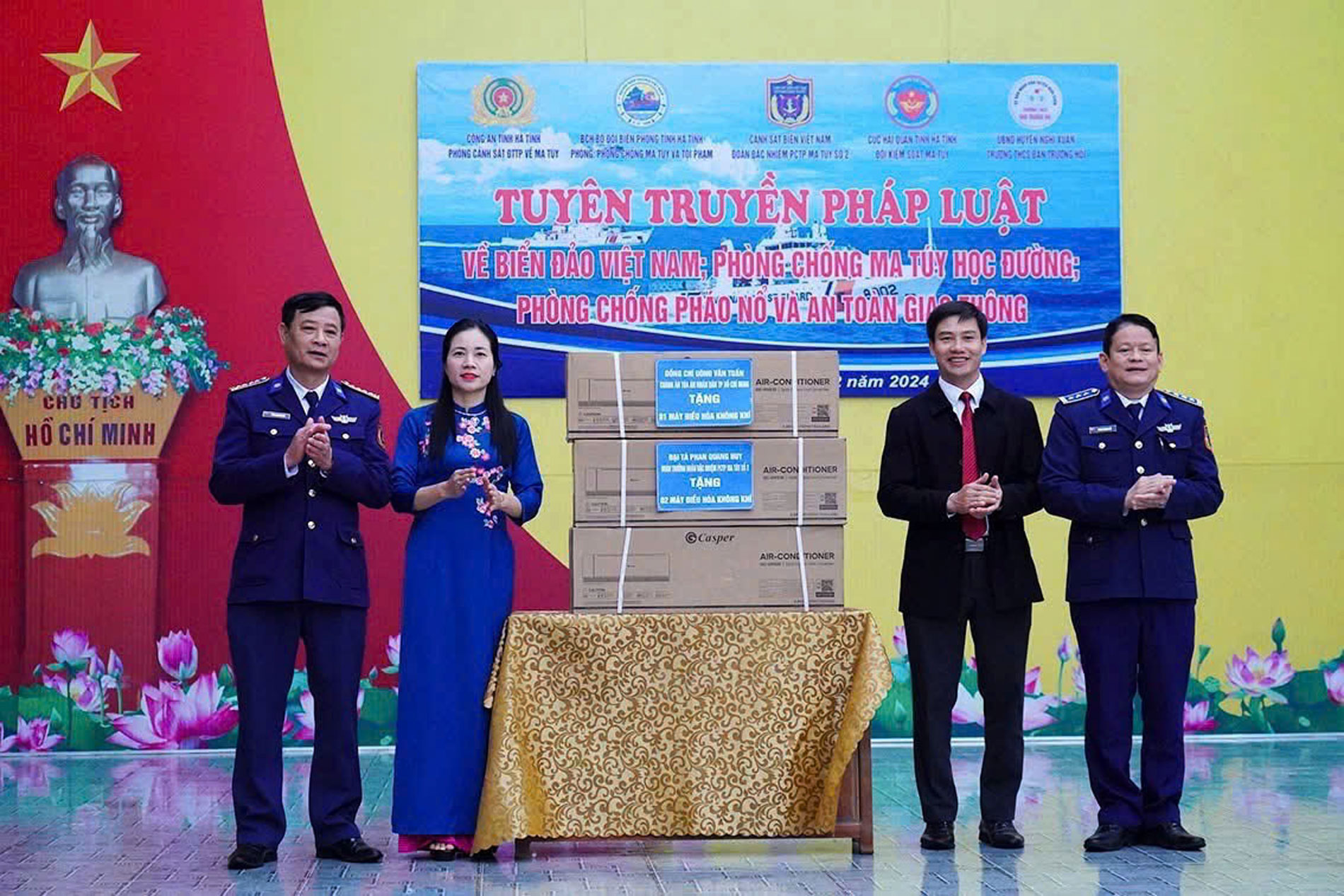 Chiều 13/12, Đoàn Đặc nhiệm PCTP ma tuý số 2 phối hợp cùng Công an tỉnh Hà Tĩnh, Bộ Chỉ huy Bộ đội Biên phòng Hà Tĩnh, Cục Hải quan Hà Tĩnh, UBND huyện Nghi Xuân (Hà Tĩnh) và các doanh nghiệp trên địa bàn huyện Nghi Xuân, tỉnh Hà Tĩnh tổ chức chương trình tuyên truyền pháp luật về biển đảo; phòng chống ma túy, phòng chống pháo nổ và an toàn giao thông cho 870 em học sinh Trường THCS Đan Trường Hội.