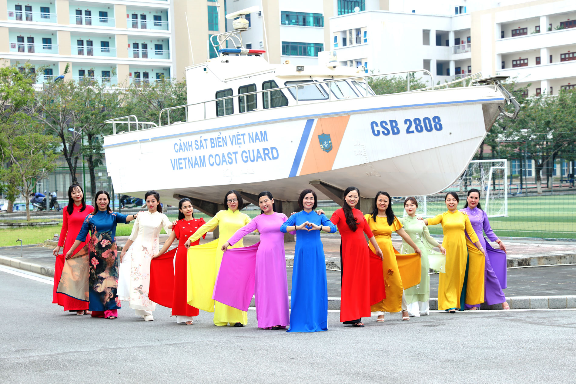 Cán bộ, hội viên Hội Phụ nữ Cục Chính trị Cảnh sát biển hưởng ứng Tháng Áo dài Hà Nội năm 2024.