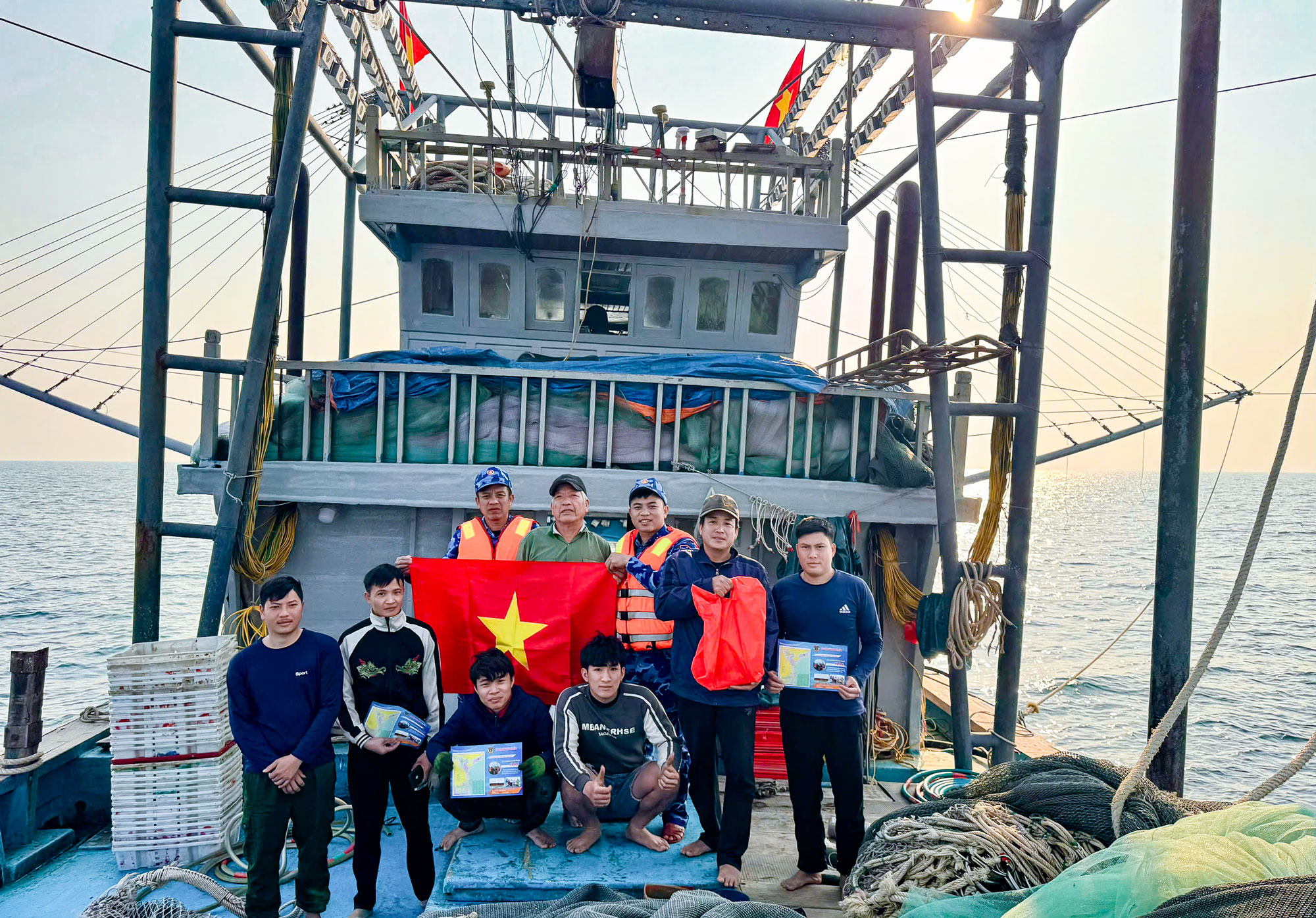 Tổ công tác Tàu CSB 8003 tuyên tuyền và tặng quà Tết cho ngư dân.