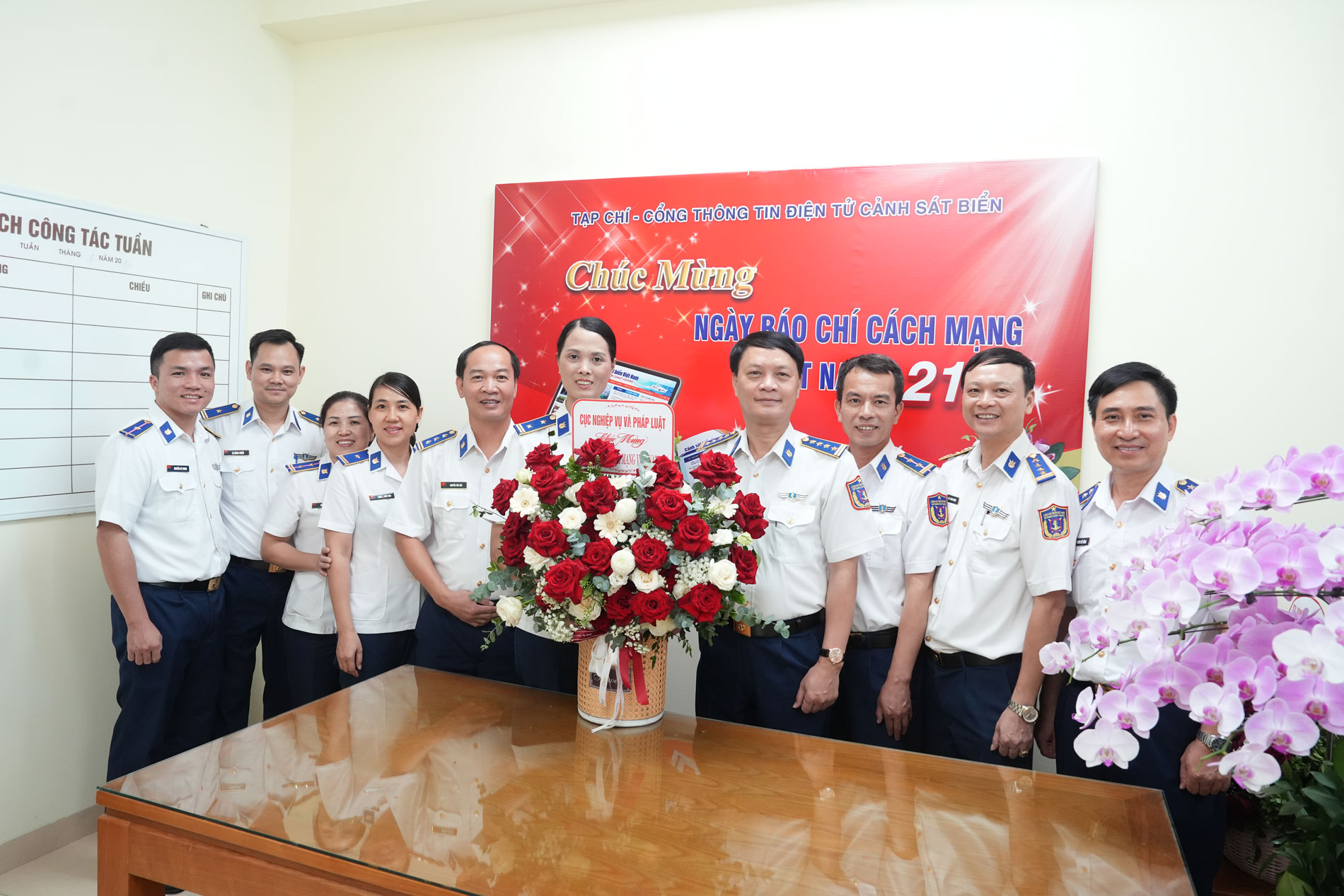 Cục Nghiệp vụ và Pháp luật Cảnh sát biển đến tặng hoa, động viên, khích lệ cán bộ, phóng viên - biên tập viên, nhân viên Cổng Thông tin điện tử, Tạp chí Cảnh sát biển Việt Nam.
