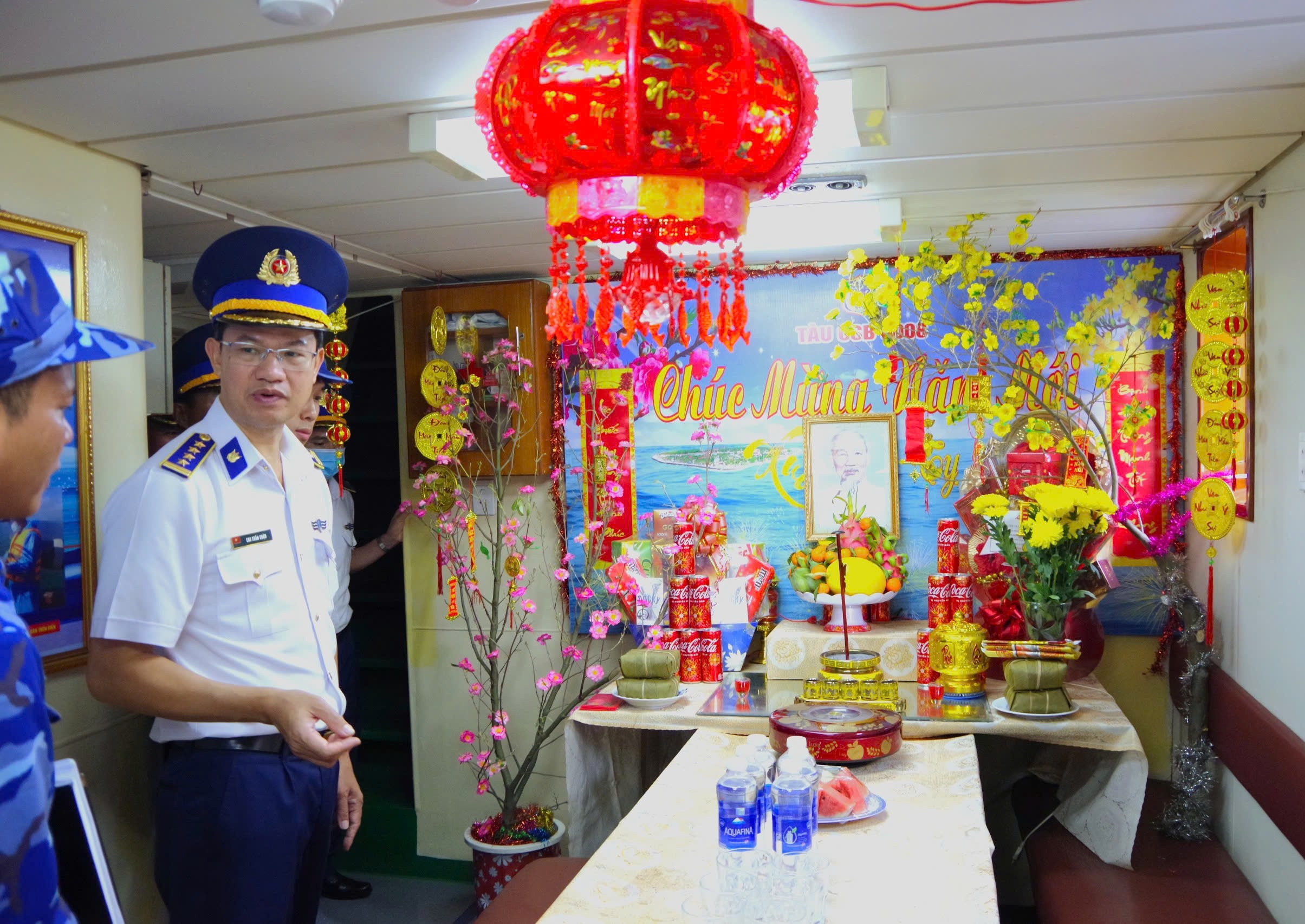 Đại tá Cao Xuân Quận kiểm tra phòng đón Xuân và công tác hậu cần trên tàu.