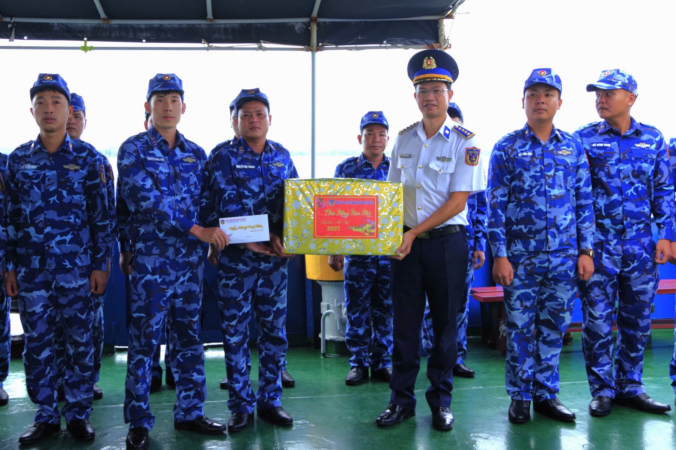 Đại tá Cao Xuân Quận yêu cầu cán bộ, chiến sĩ nêu cao ý chí quyết tâm, khắc phục mọi khó khăn, hoàn thành xuất sắc nhiệm vụ trực trước, trong và sau Tết Nguyên đán Ất Tỵ 2025; duy trì nghiêm nền nếp, chế độ trực, sẵn sàng chiến đấu và chủ động, linh hoạt trong thực hiện các nhiệm vụ tuần tra, kiểm soát, bảo đảm an ninh, an toàn tuyến biển; tuần tra, kiểm tra, kiểm soát, phòng, chống khai thác IUU; sẵn sàng thực hiện nhiệm vụ cứu hộ, cứu nạn, giúp đỡ ngư dân đi biển trong dịp Tết. Cùng với đó, cán bộ, chỉ huy Tàu cần quan tâm chăm lo đời sống tinh thần, vật chất để anh em đón Tết trên biển ấm áp, vui tươi, an toàn.