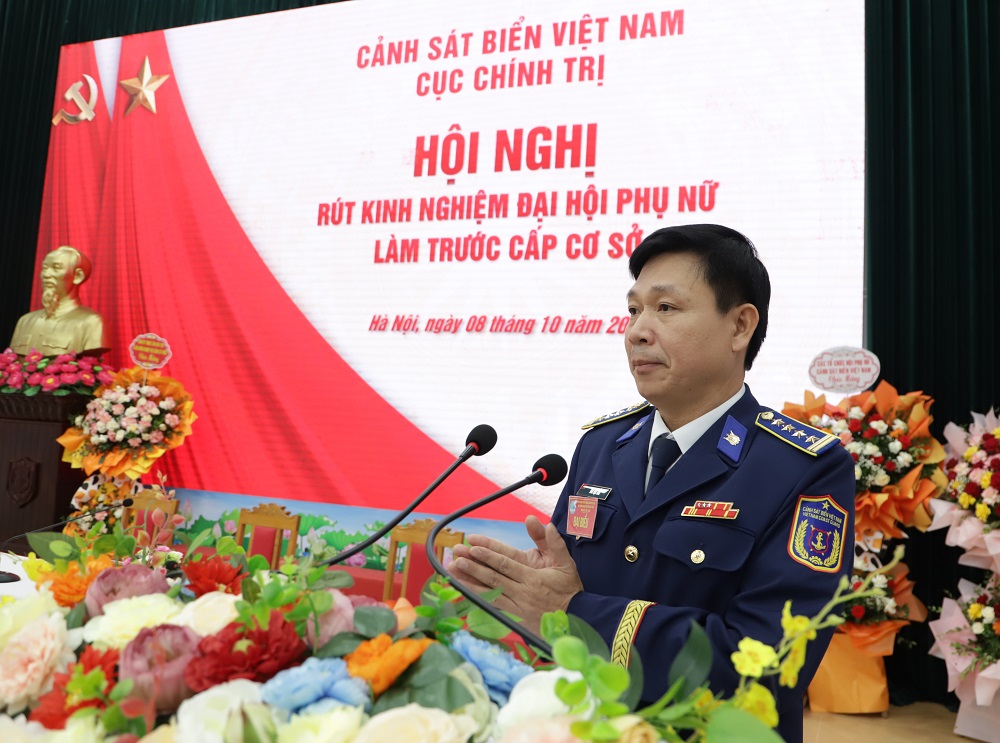 Phát biểu chỉ đạo Đại hội, Đại tá Nguyễn Văn Tuân - Chính ủy Trung tâm chúc mừng những thành tích mà cán bộ, hội viên phụ nữ Trung tâm đạt được trong giai đoạn vừa qua. Đồng thời, yêu cầu trong nhiệm kỳ 2025 - 2030, Ban Chấp hành Hội cần thường xuyên quán triệt nghiêm túc các chỉ thị, nghị quyết, kế hoạch, hướng dẫn của cấp trên; chăm lo xây dựng, củng cố, kiện toàn tổ chức Hội vững mạnh. Thường xuyên đổi mới, nâng cao chất lượng, hiệu quả các phong trào thi đua; tăng cường giáo dục nâng cao kiến thức, kỹ năng xây dựng gia đình văn hóa, hạnh phúc. Kịp thời tham mưu, đề xuất các biện pháp nhằm thực hiện tốt chế độ, chính sách liên quan đến phụ nữ, trẻ em và bình đẳng giới, góp phần xây dựng hình ảnh người phụ nữ Cảnh sát biển trong kỷ nguyên mới: “Bản lĩnh - trí tuệ - kỷ cương - nhân ái”, hoàn thành tốt mọi nhiệm vụ được giao.