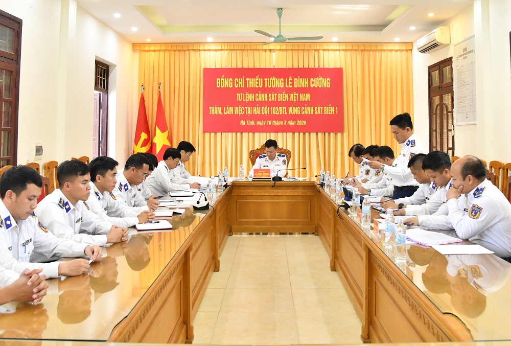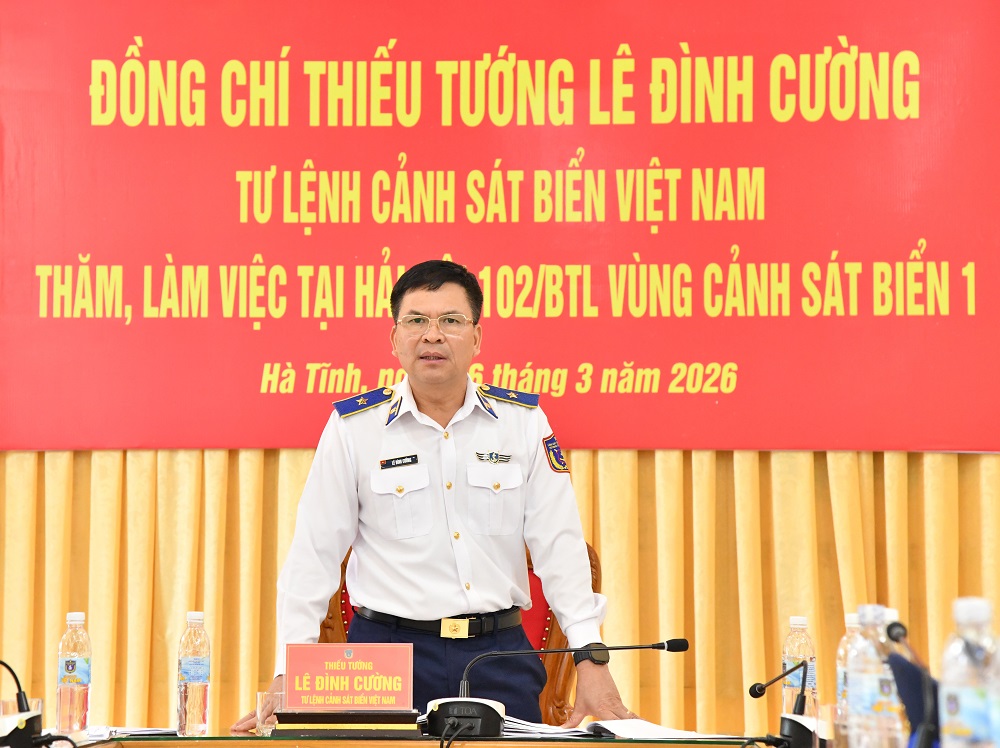 Phát biểu tại buổi làm việc, Thiếu tướng Lê Đình Cường ghi nhận, biểu dương những kết quả mà cán bộ, chiến sĩ Hải đội 102 đạt được trong thời gian qua. Đồng chí Tư lệnh Cảnh sát biển Việt Nam yêu cầu cán bộ, chiến sĩ Hải đội 102 tiếp tục quán triệt sâu sắc nhiệm vụ được giao, duy trì nghiêm nền nếp, chế độ sẵn sàng chiến đấu; nâng cao chất lượng huấn luyện, khả năng xử trí các tình huống trên biển; thực hiện hiệu quả nhiệm vụ tuần tra, kiểm soát, thực thi pháp luật, góp phần giữ vững an ninh, trật tự, an toàn trên vùng biển được phân công quản lý.