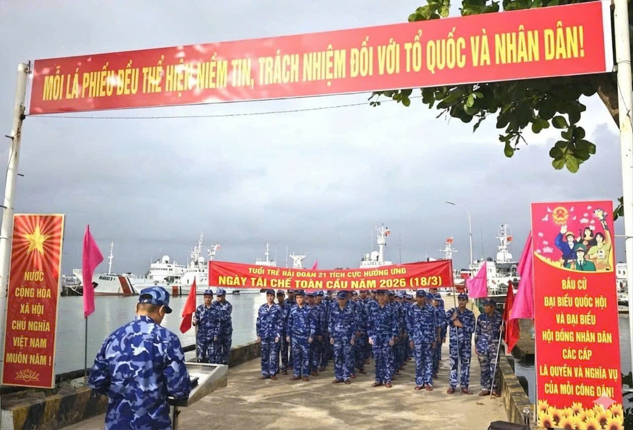 Ngày 18/3, Hải đoàn 21/ Bộ Tư lệnh Vùng Cảnh sát biển 2 tổ chức đợt ra quân với chủ đề “Hải đoàn 21 chung tay xây dựng thế giới xanh” nhằm hưởng ứng Ngày Tái chế toàn cầu năm 2026.
