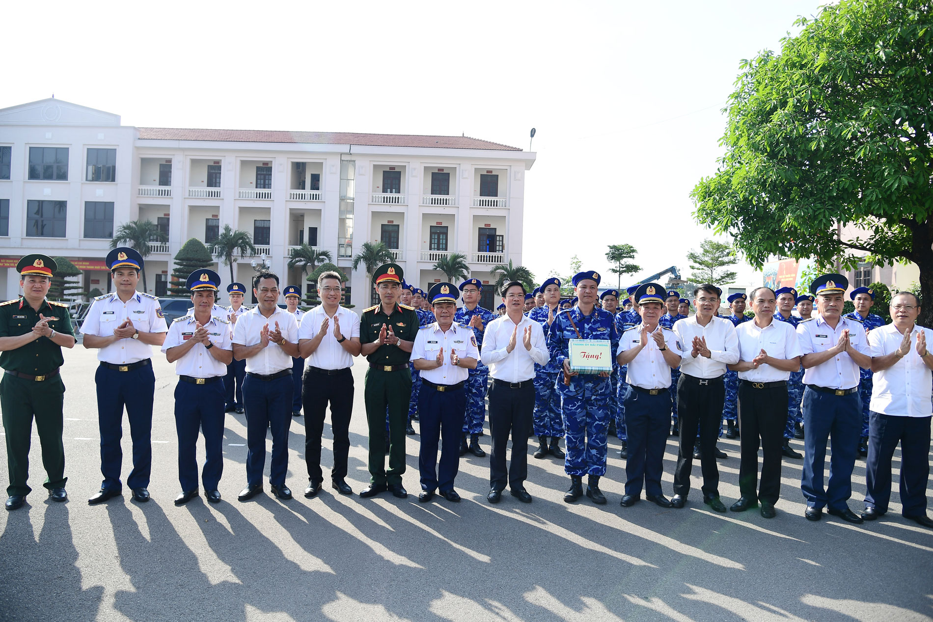 Tặng quà, động viên khối Cảnh sát biển Việt Nam tham gia Lễ kỷ niệm 70 năm Giải phóng Hải Phòng.