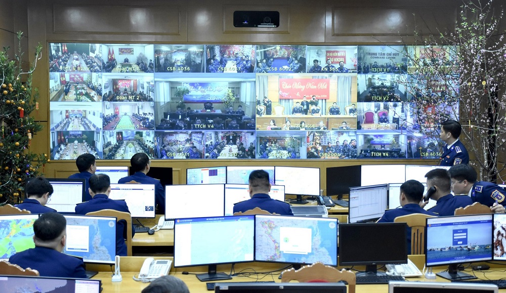 Trung tâm Chỉ huy Cảnh sát biển Việt Nam nắm tình hình các tàu đang làm nhiệm vụ trên các vùng biển qua hệ thống truyền hình vệ tinh.