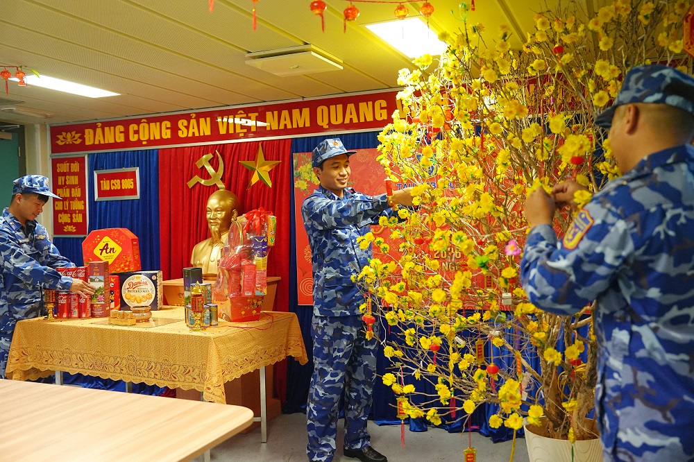 Trong khoang tàu, cành mai vàng, cặp bánh chưng xanh được chuẩn bị giản dị mà đậm nghĩa tình. Giữa tiếng sóng vỗ và những mệnh lệnh dứt khoát từ Sở chỉ huy, cán bộ, chiến sĩ vừa đón xuân trong tình đồng chí, đồng đội, vừa chắc tay súng, vững tay lái thực hiện nhiệm vụ tuần tra, kiểm tra, kiểm soát trên biển.