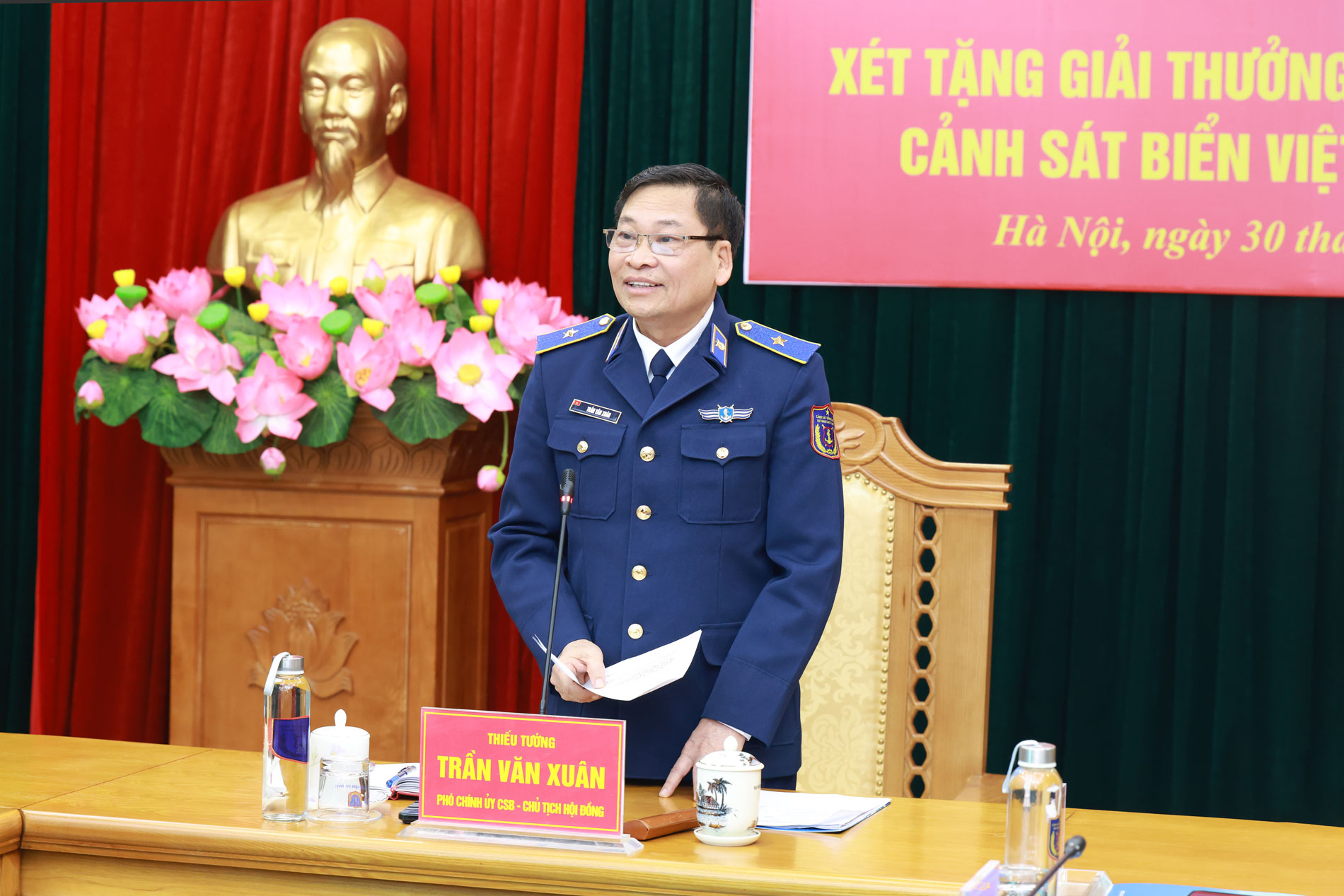 Thiếu tướng Trần Văn Xuân - Phó Chính ủy Cảnh sát biển Việt Nam, Chủ tịch Hội đồng phát biểu kết luận.
