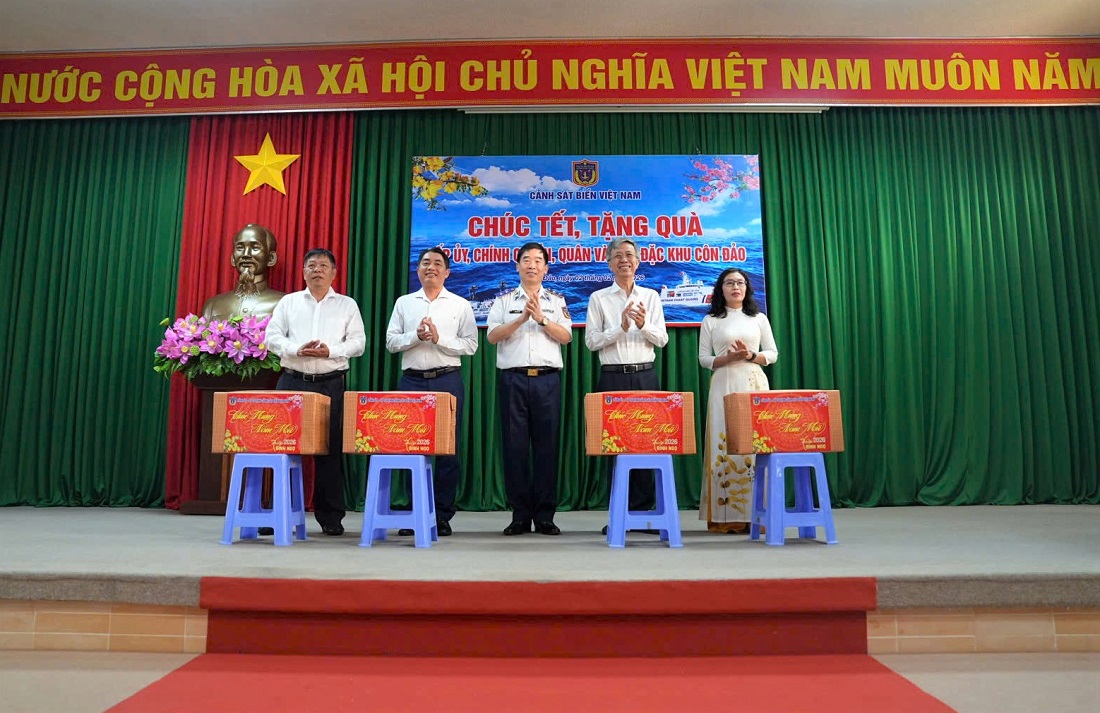 Sáng 2/2, trong chuyến công tác kiểm tra, thăm và chúc Tết các đơn vị thực hiện nhiệm vụ trên khu vực biển phía Tây Nam, Đoàn công tác Cảnh sát biển Việt Nam do Trung tướng Bùi Quốc Oai - Bí thư Đảng ủy, Chính ủy Cảnh sát biển Việt Nam làm trưởng đoàn đã đến chúc Tết, tặng quà chính quyền, quân và dân đặc khu Côn Đảo nhân dịp Tết Nguyên đán Bính Ngọ năm 2026.