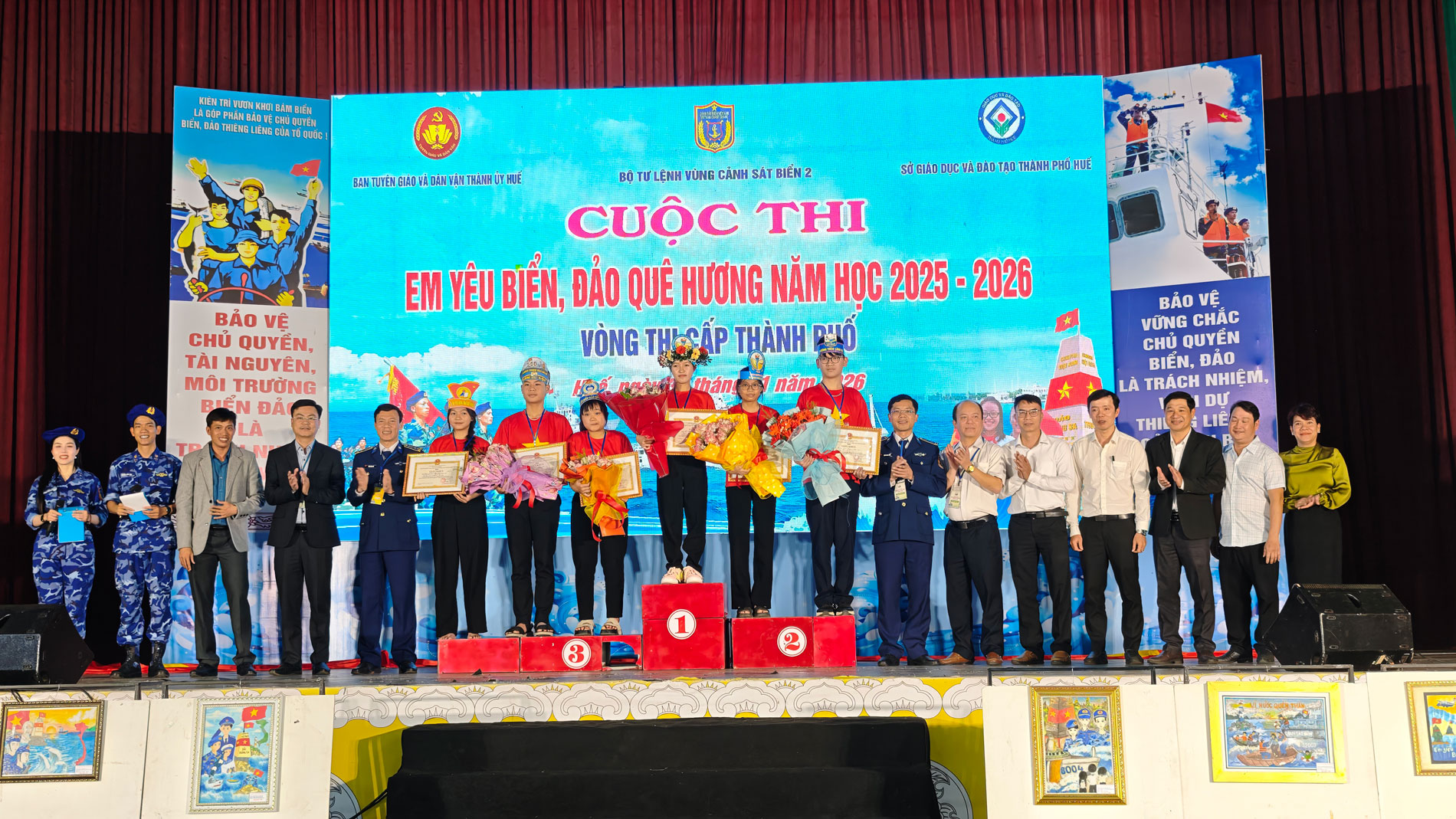 Ngày 30/1, tại Trung tâm Thanh thiếu nhi thành phố Huế, Bộ Tư lệnh Vùng Cảnh sát biển 2 phối hợp với Ban Tuyên giáo và Dân vận Thành ủy, Sở Giáo dục và Đào tạo thành phố Huế tổ chức Cuộc thi “Em yêu biển, đảo quê hương” vòng thi cấp thành phố dành cho học sinh các trường THCS trên địa bàn 7 xã, phường ven biển.