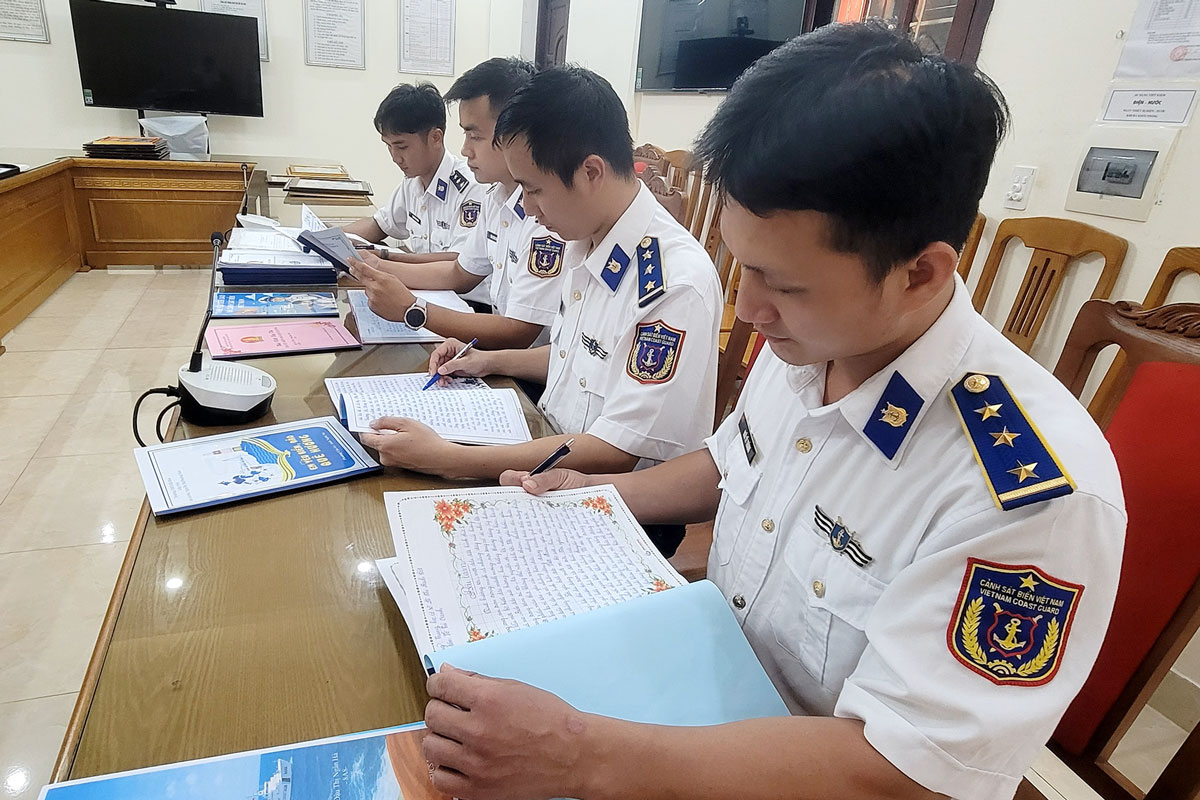 Ban Giám khảo chấm thi các bài viết cảm xúc về biển đảo và người chiến sĩ Cảnh sát biển.