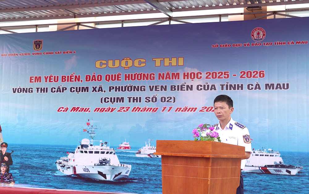 Ngày 23/11, Hải đoàn 42/ Bộ Tư lệnh Vùng Cảnh sát biển 4 phối hợp với Sở Giáo dục và Đào tạo tỉnh Cà Mau tổ chức Cuộc thi “Em yêu biển, đảo quê hương” năm học 2025 - 2026 dành cho học sinh khối Trung học cơ sở (THCS) trên địa bàn tỉnh Cà Mau.