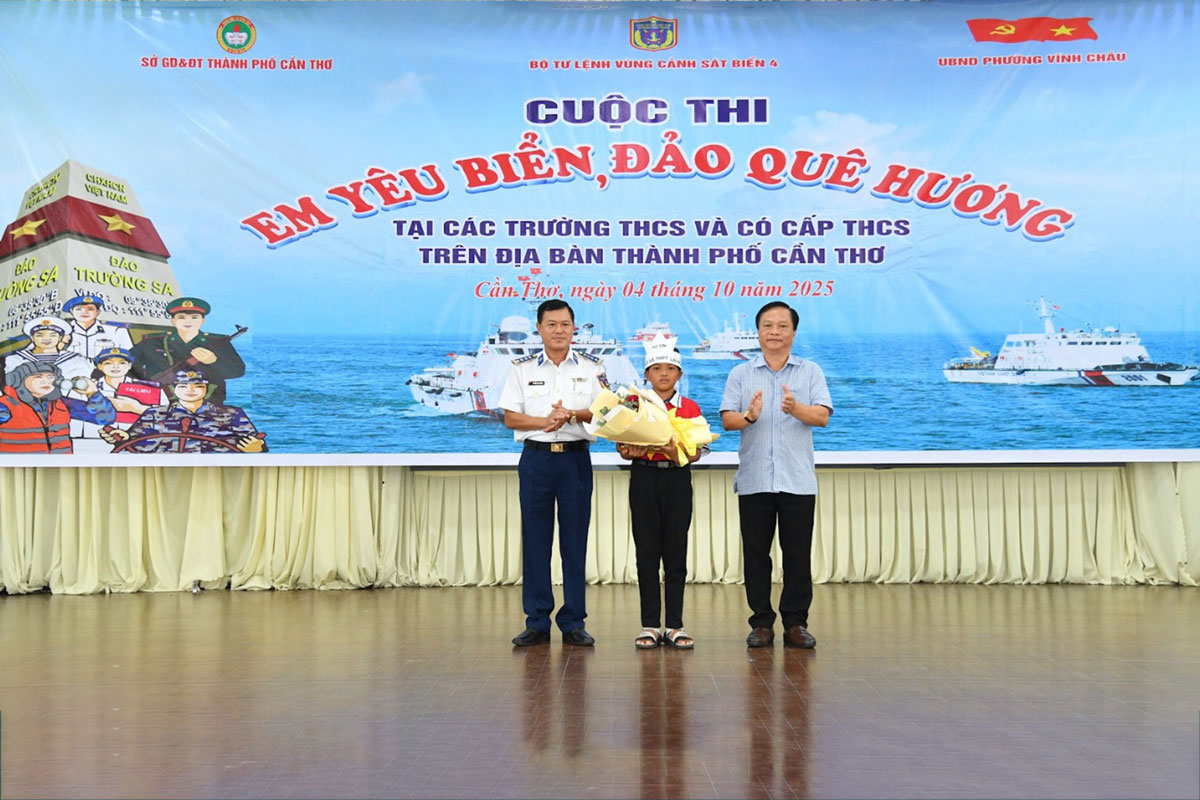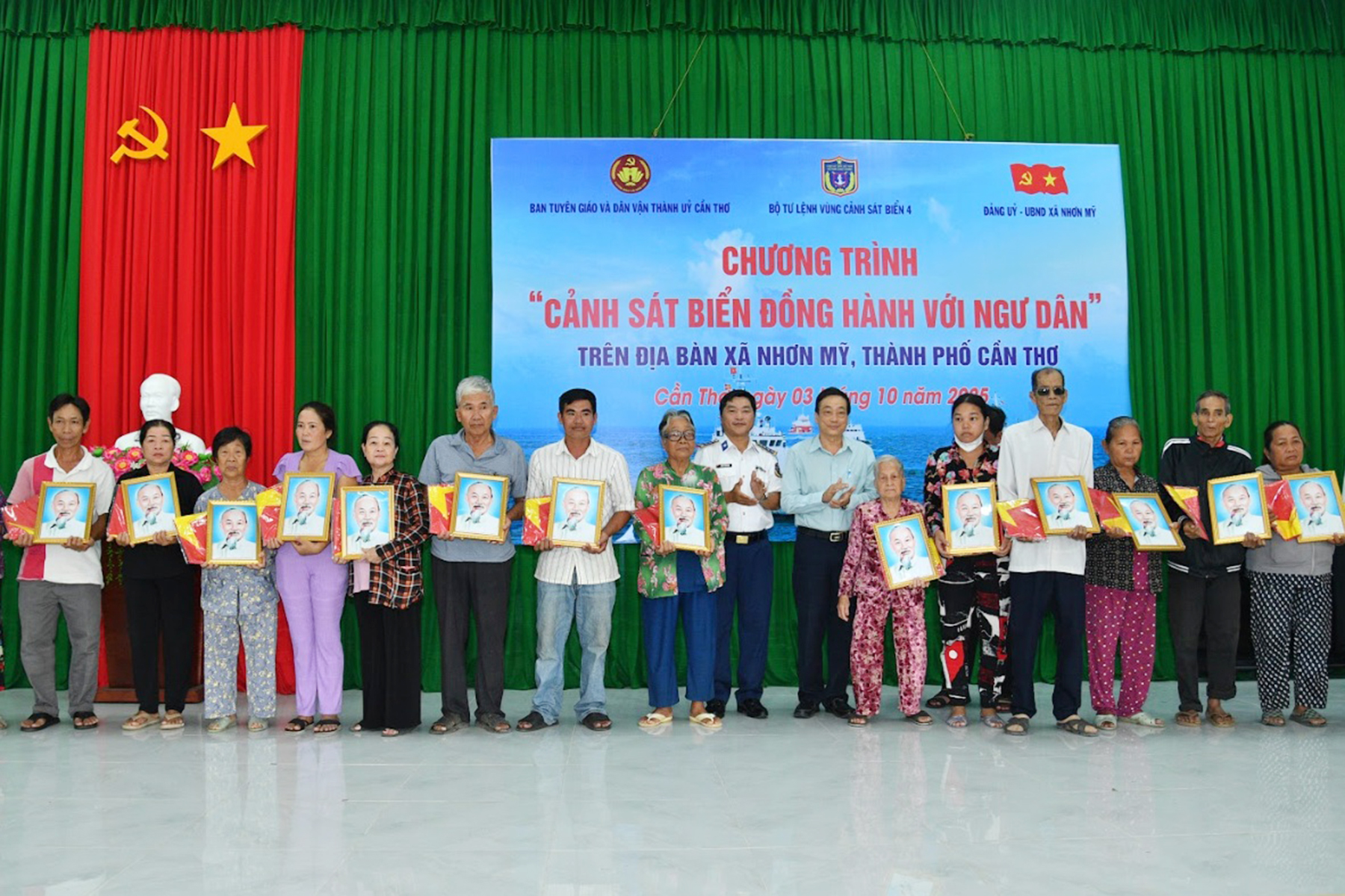 Trong hai ngày 3, 4/10, Bộ Tư lệnh Vùng Cảnh sát biển 4 phối hợp với Ban Tuyên giáo và Ban Dân vận Thành ủy Cần Thơ, Sở Giáo dục và Đào tạo thành phố Cần Thơ, cùng Đảng ủy, UBND các địa phương tổ chức Chương trình “Cảnh sát biển đồng hành với ngư dân” tại xã Nhơn Mỹ và Cuộc thi “Em yêu biển, đảo quê hương” tại xã Vĩnh Châu.