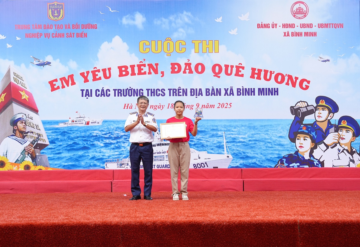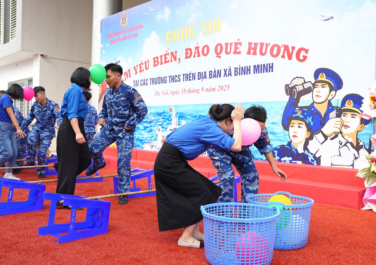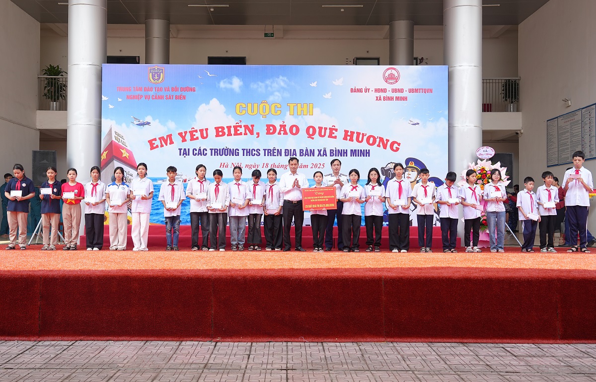 Sáng 18/9, Trung tâm Đào tạo và Bồi dưỡng nghiệp vụ Cảnh sát biển (Trung tâm) phối hợp với UBND xã Bình Minh (thành phố Hà Nội) và các trường THCS trên địa bàn tổ chức Cuộc thi “Em yêu biển, đảo quê hương” tại Trường THCS Bình Minh.