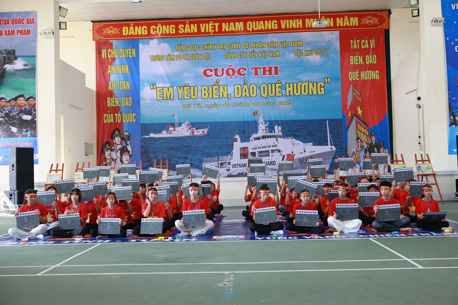 Tiếp tục chương trình công tác dân vận “Cảnh sát biển đồng hành với ngư dân” tại Đặc khu Cô Tô, Quảng Ninh, chiều 10/10, Cảnh sát biển Việt Nam phối hợp với Ban Tuyên giáo và Dân vận Tỉnh ủy Quảng Ninh, Đảng ủy, UBND đặc khu Cô Tô tổ chức cuộc thi “Em yêu biển, đảo quê hương”.