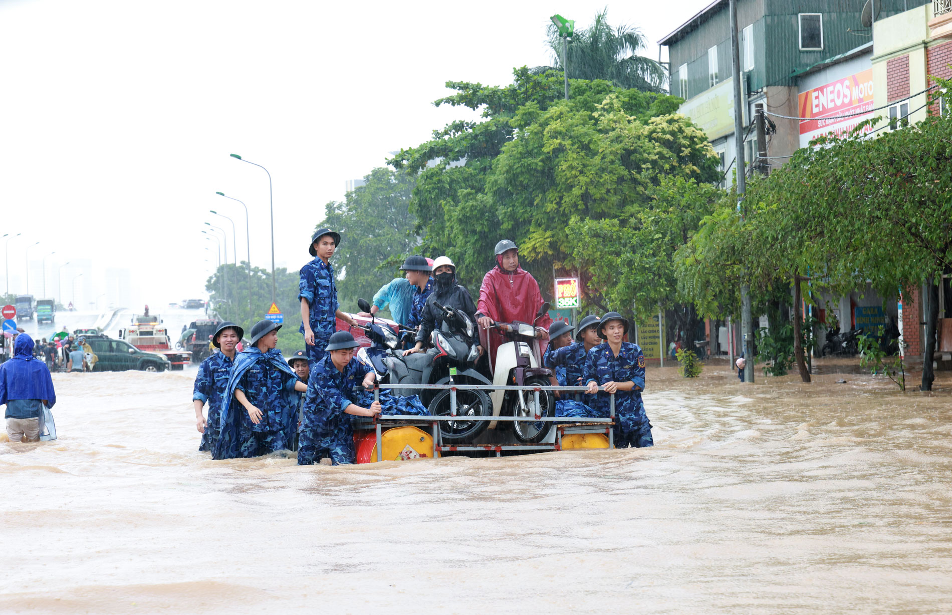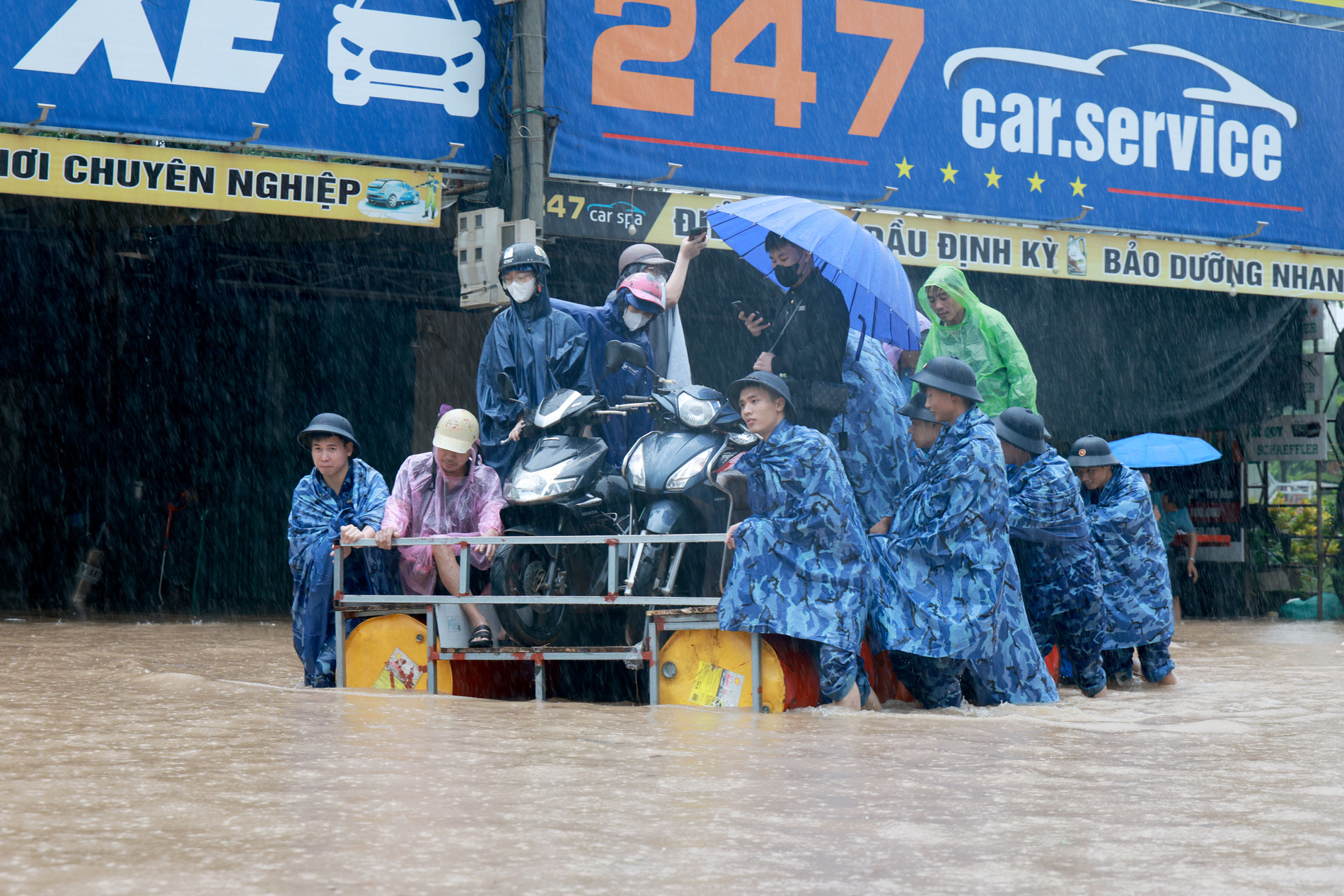 Cô Sinh (quê Chương Mỹ, Hà Nội) chia sẻ, cô đi buôn bán ở chợ khu vực Minh Khai di chuyển về đến cầu vượt Tây Mỗ thì nước ngập sâu không thể đi tiếp, được các chiến sĩ Cảnh sát biển hỗ trợ rất nhiệt tình, lội mưa đưa người dân và phương tiện qua điểm ngập lụt bằng phương tiện tự chế giữa mưa lớn, không quản ngại vất vả. Hình ảnh đó khiến tôi cảm thấy vô cùng trân trọng.