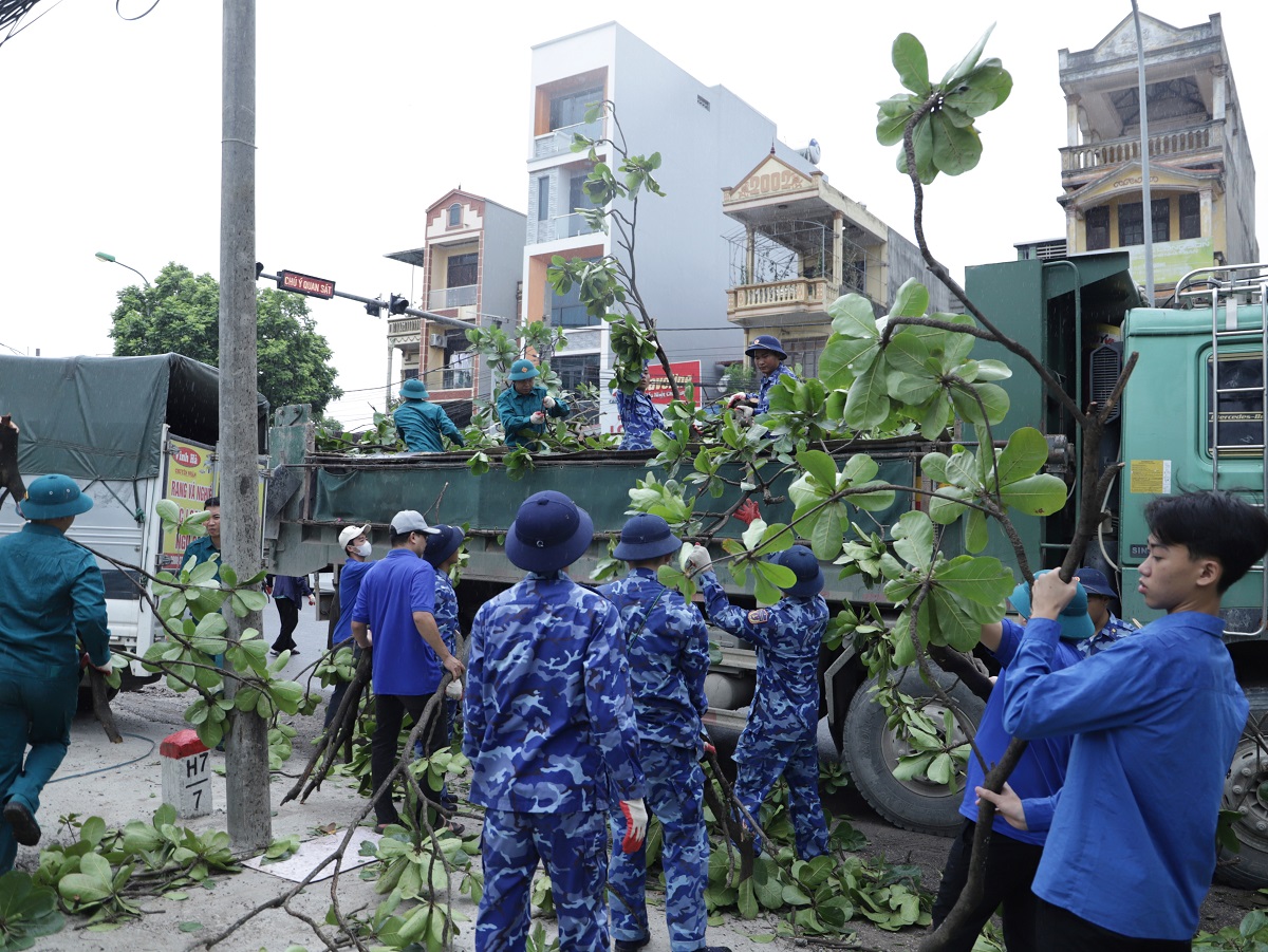 Cũng trong ngày 21/7, Trung tâm Đào tạo và Bồi dưỡng nghiệp vụ Cảnh sát biển đã điều động 30 cán bộ, học viên phối hợp với cấp ủy, chính quyền xã Bình Minh (thành phố Hà Nội) tổ chức cắt tỉa, gia cố hệ thống cây xanh trên địa bàn.