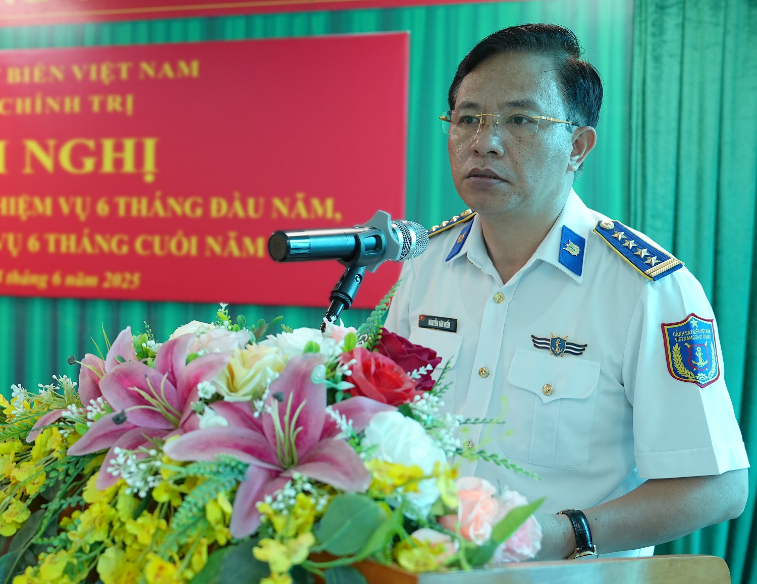 Đại tá Nguyễn Văn Hiển - Phó Chủ nhiệm Chính trị Cảnh sát biển Việt Nam quán triệt Nghị quyết lãnh đạo thực hiện nhiệm vụ 6 tháng cuối năm 2025.