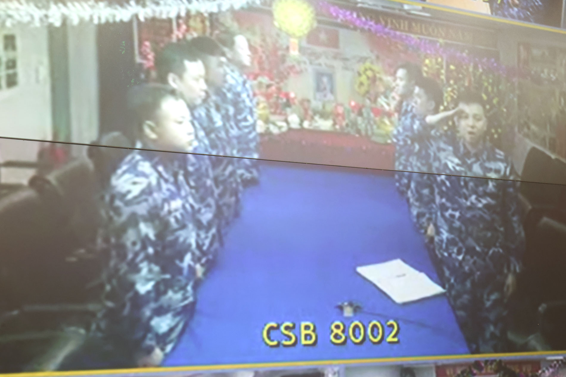 Đại úy Lê Việt Anh - Thuyền trưởng tàu CSB 8002 dõng dạc báo cáo.
