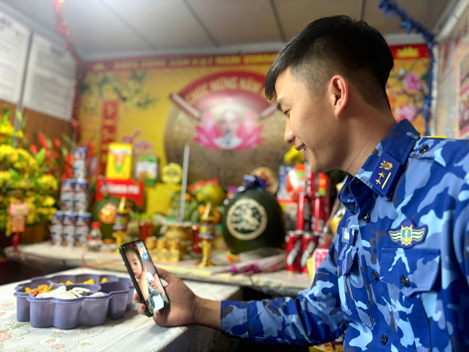 Còn người lính trẻ Trung úy Lê Hữu Hùng - Trưởng ngành Cơ điện tàu CSB 4039 nghẹn ngào gửi về hậu phương những lời nhắn nhủ: Vợ à, anh nhớ hai mẹ con rất nhiều, hai mẹ con ở nhà giữ gìn sức khỏe; bố đang cùng đồng đội thực hiện nhiệm vụ giữ bình yên cho Tổ quốc. Khi nào hoàn thành nhiệm vụ bố sẽ về với 2 mẹ con. Bố nhớ 2 mẹ con rất nhiều!