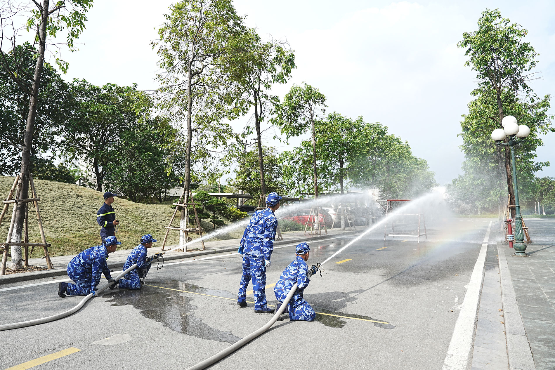 Đội hình thể thao phối hợp chữa cháy, cứu người ra khỏi đám cháy.