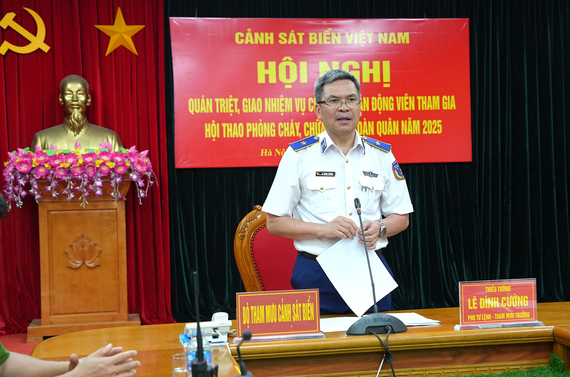 Phát biểu giao nhiệm vụ, Thiếu tướng Lê Đình Cường ghi nhận, biểu dương quá trình luyện tập của đoàn vận động viên, sự chuẩn bị chu đáo của Phòng Cứu hộ cứu nạn và bảo vệ môi trưởng biển/Bộ Tham mưu và sự giúp đỡ tổ giáo viên của Công an PCCC thành phố Hà Nội. Để đạt thành tích cao trong Hội thao, đồng chí Phó Tư lệnh, Tham mưu trưởng Cảnh sát biển Việt Nam yêu cầu đội tuyển tiếp tục quán triệt nghiêm túc, tổ chức luyện tập chặt chẽ; các thành viên luyện tập nghiêm túc, đầy đủ, trách nhiệm, quyết tâm đạt kết quả cao nhất trong hội thao, đảm bảo an toàn tuyệt đối về người và vũ khí trang bị kỹ thuật, phương tiện, vật chất.