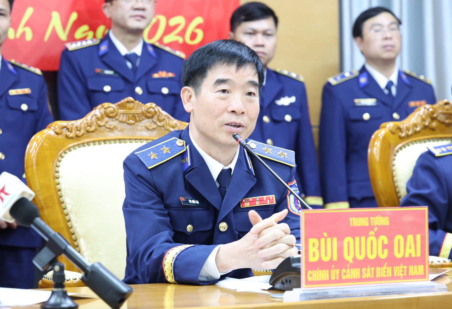 Trung tướng Bùi Quốc Oai - Chính ủy Cảnh sát biển gửi lời động viên, thăm hỏi đến cán bộ, chiến sĩ trực Tết trong toàn Lực lượng.