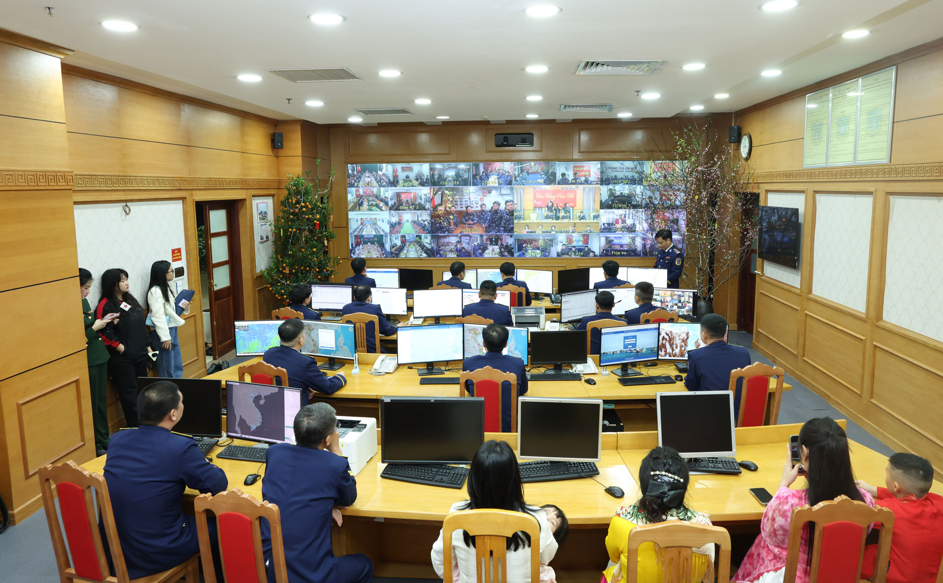Cũng qua hệ thống truyền hình vệ tinh, đồng chí Tư lệnh Cảnh sát biển Việt Nam thay mặt cho các đồng chí trong Thường vụ Đảng ủy, Thủ trưởng Bộ Tư lệnh Cảnh sát biển Việt Nam đã biểu dương tinh thần, trách nhiệm của cán bộ, chiến sĩ trên các tàu trực trong thực hiện nhiệm vụ trực Tết trên các vùng biển, đảo của Tổ quốc. Chuẩn bị bước sang năm mới Bính Ngọ 2026, Thủ trưởng Bộ Tư lệnh Cảnh sát biển chúc các cán bộ, chiến sĩ một năm mới dồi dào sức khỏe, gia đình hạnh phúc, sẵn sàng nhận và hoàn thành xuất sắc nhiệm vụ được giao; luôn nêu cao tinh thần cảnh giác, không để Tổ quốc bị động bất ngờ trong mọi tình huống.
