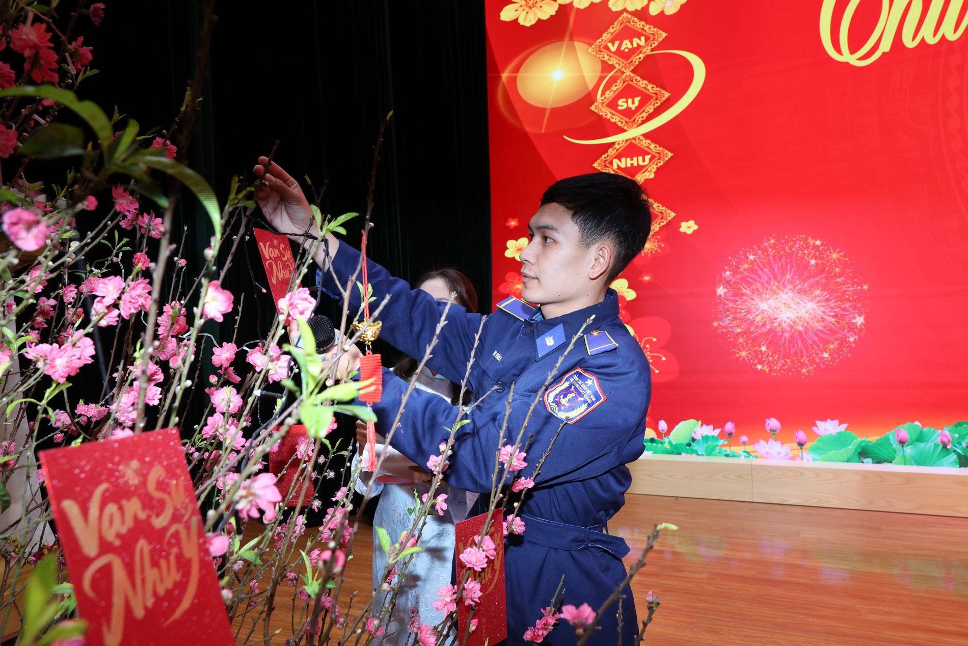 Chúc Tết cán bộ, nhân viên, chiến sĩ đang làm nhiệm vụ trực Tết tại Cơ quan Bộ Tư lệnh, thay mặt Thường vụ Đảng ủy và Thủ trưởng Bộ Tư lệnh Cảnh sát biển Việt Nam, Thiếu tướng Lê Đình Cường - Tư lệnh Cảnh sát biển ghi nhận, biểu dương, khen ngợi thành tích mà cán bộ, chiến sĩ toàn Lực lượng đã đạt được trong năm qua.