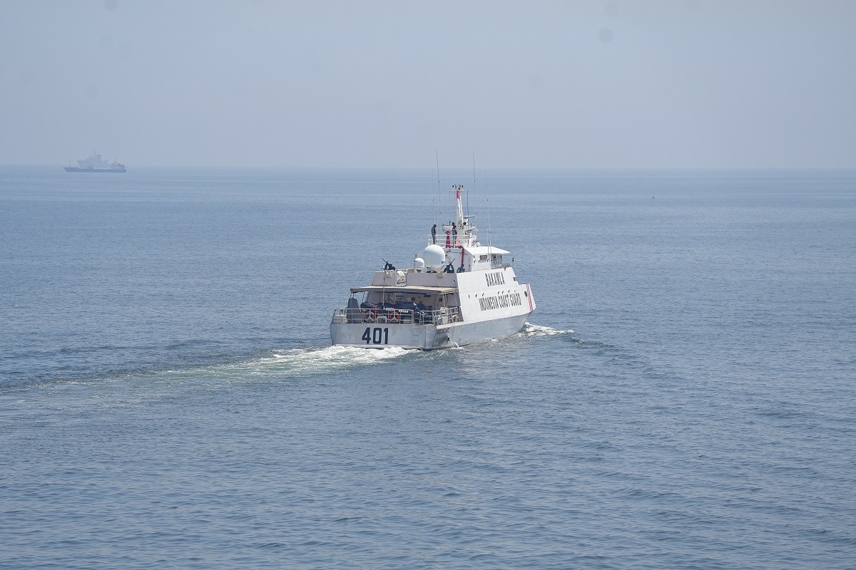 Tàu KN Bintang Laut 401 của Cảnh sát biển Indonesia tham gia luyện tập di chuyển theo đội hình.